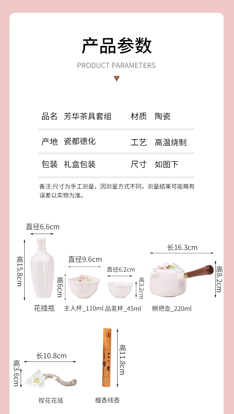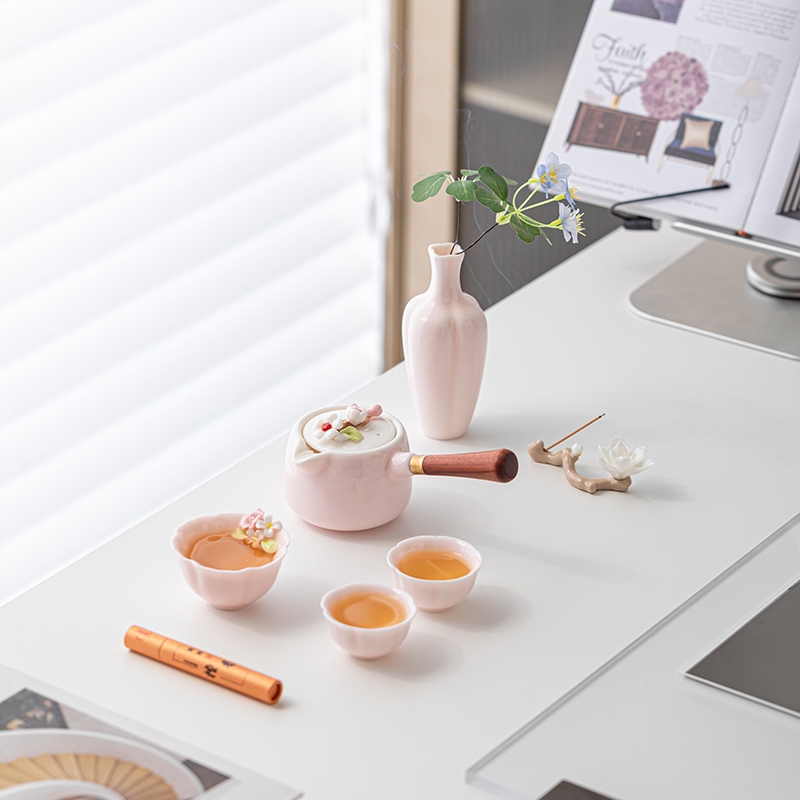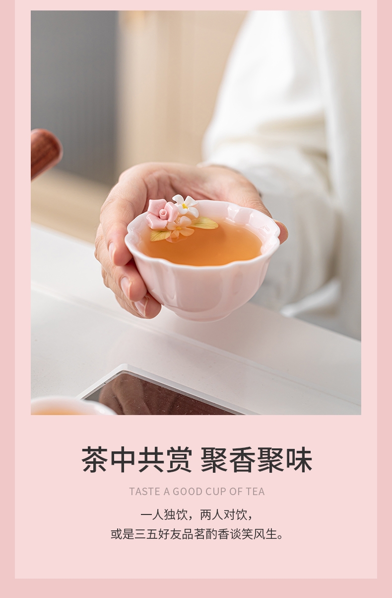 辞蕴 粉色捏花功夫茶具套装高档伴手礼