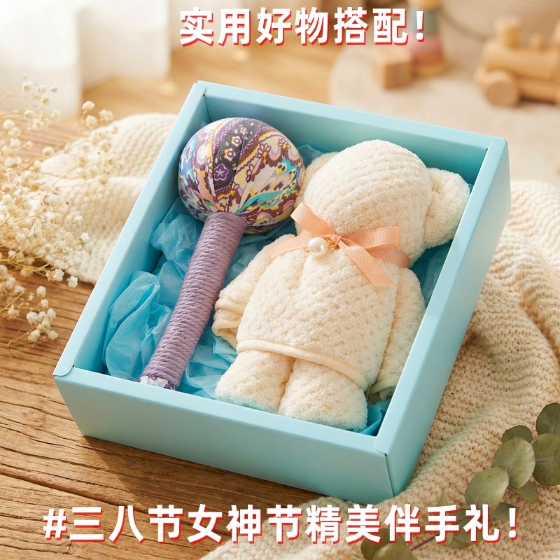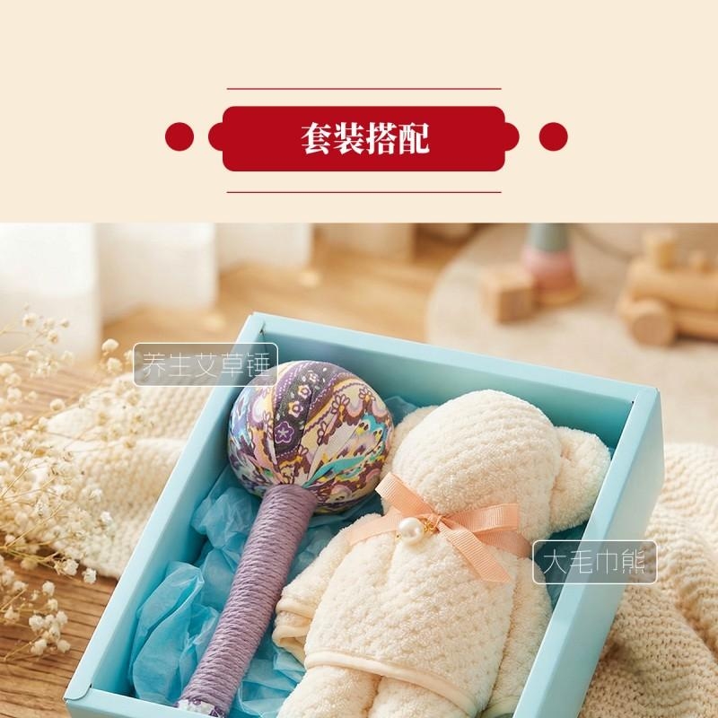 组合:公主艾草养生锤*1、菠萝格纹理创意小熊毛巾75*34CM