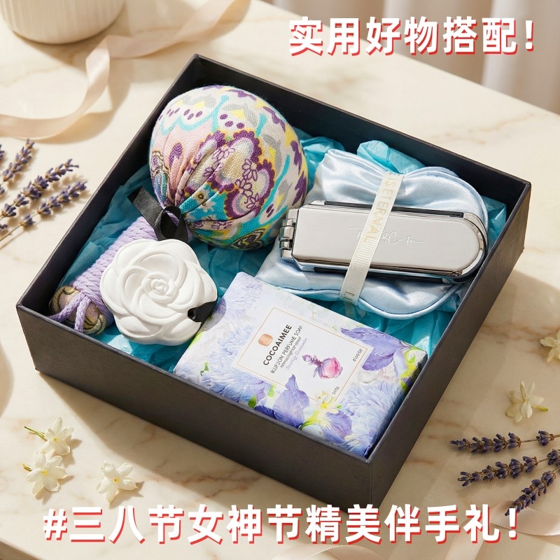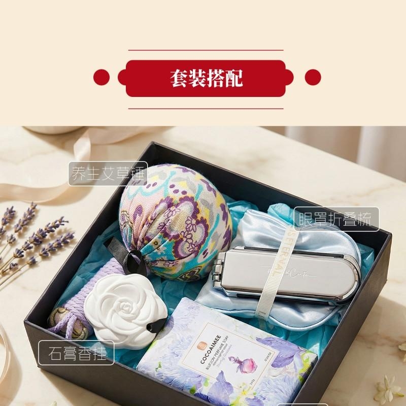 组合:公主艾草养生锤*1、山茶花石膏香挂*1、可可艾米香氛皂248g*1、女神节公主眼罩+折叠镜子头梳组合*1