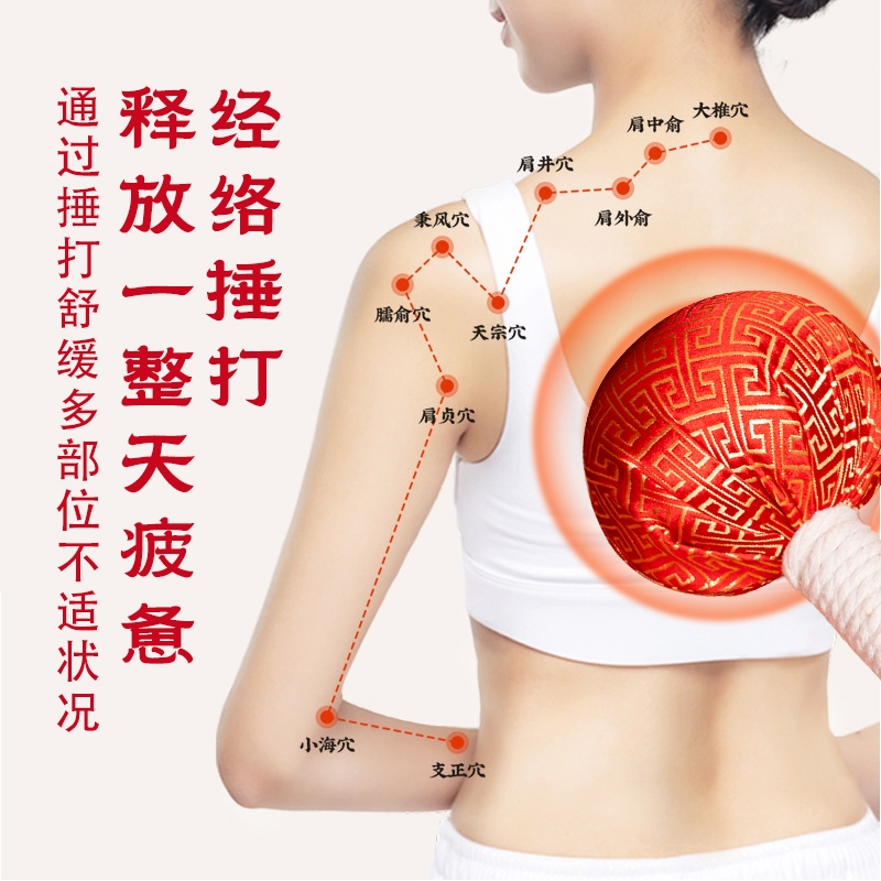 一份好礼,按摩全身,舒筋通络,守护客户四时安康;红色金丝缎面艾草锤,喜庆吉祥,锤出安康;按摩通经络,实用好礼就这一套