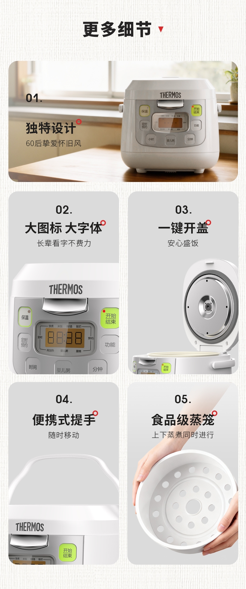 膳魔师 电饭煲家用小型2LEHA-4126E-W
