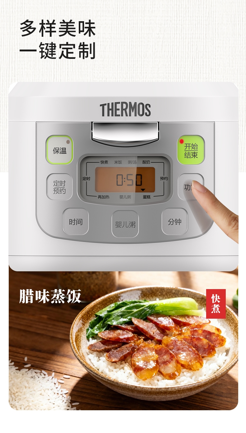 液晶大屏,数字显示或LED显示,易于控制;2升容量,轻便易放置;24小时预约,10大智能菜单