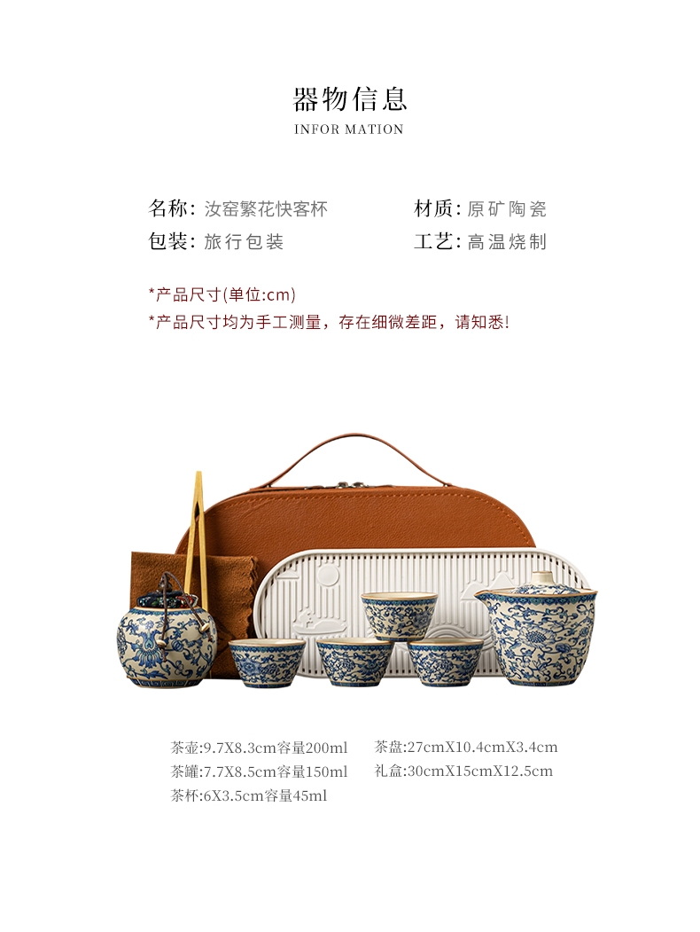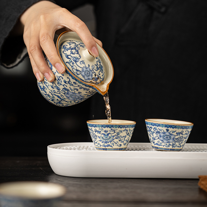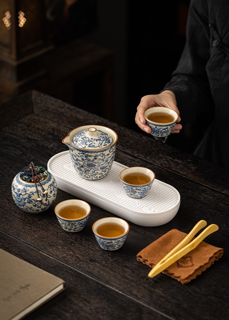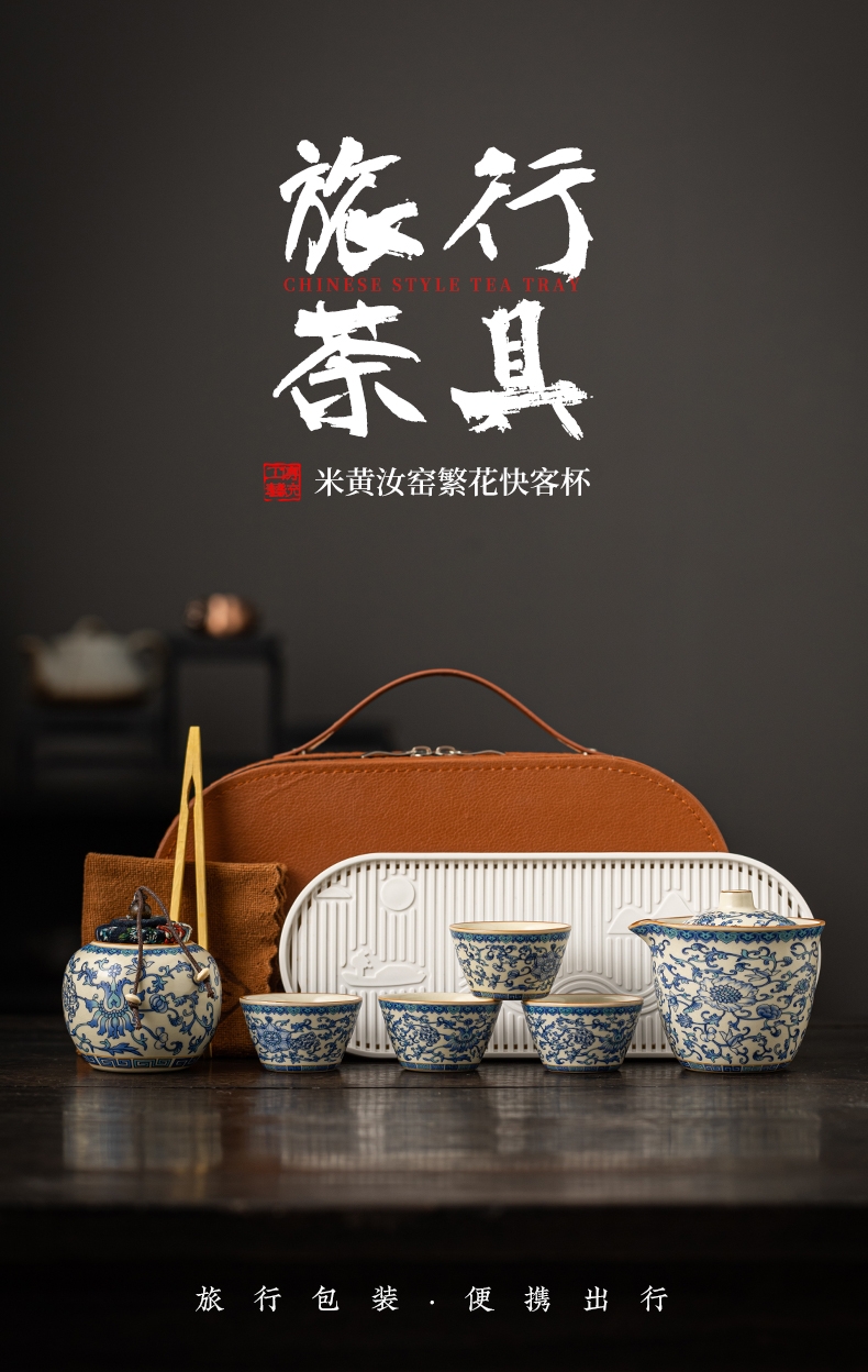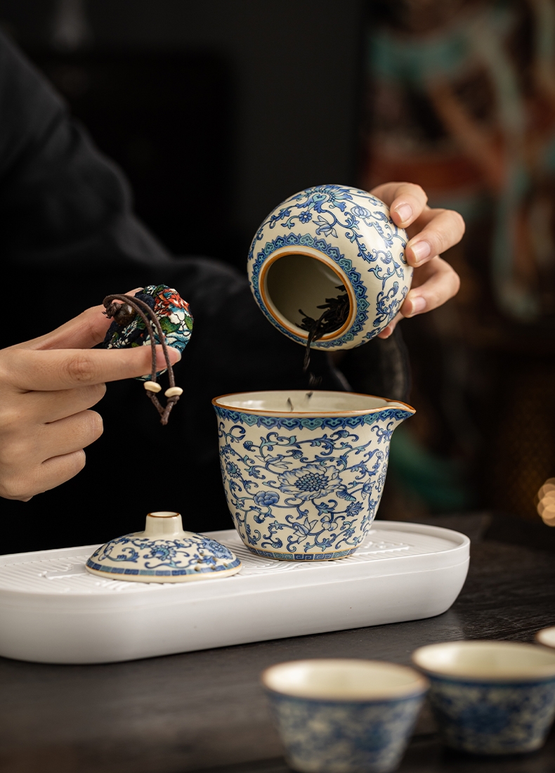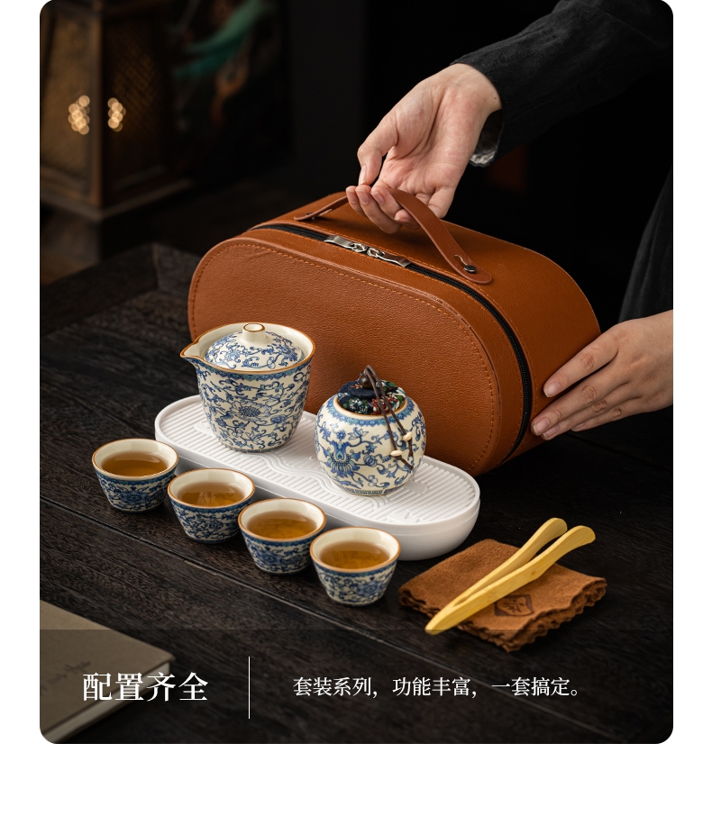 辞蕴 缠枝莲旅行茶具陶瓷快客杯便携式