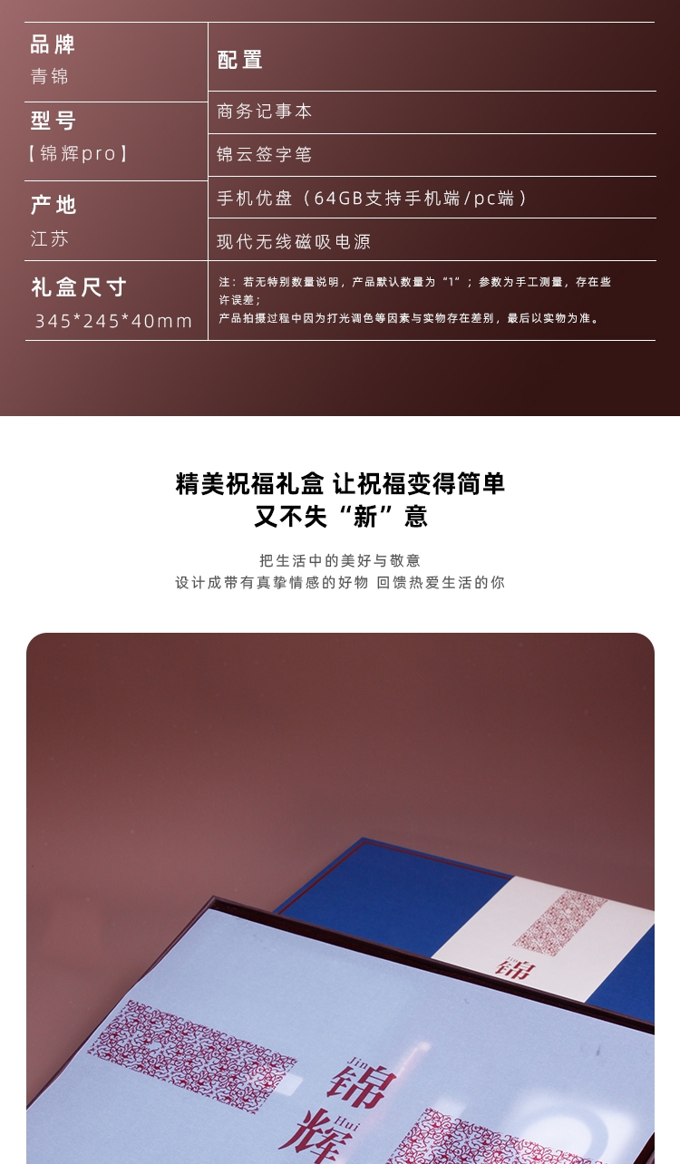 青锦 记事本签字笔优盘充电宝商务礼盒