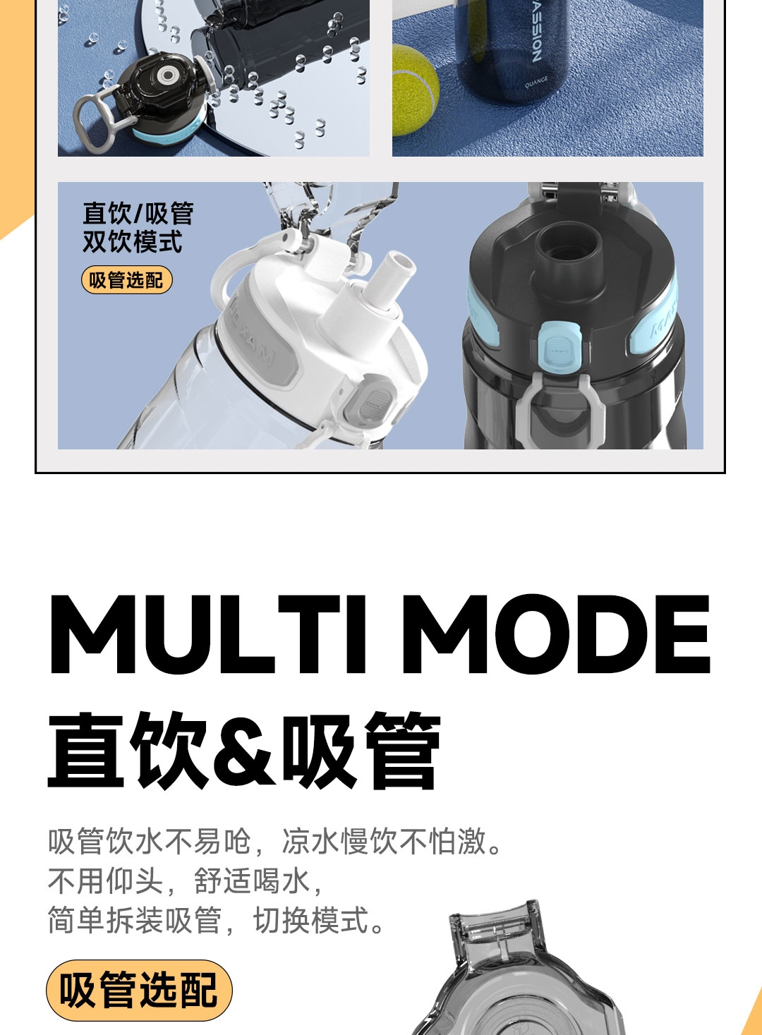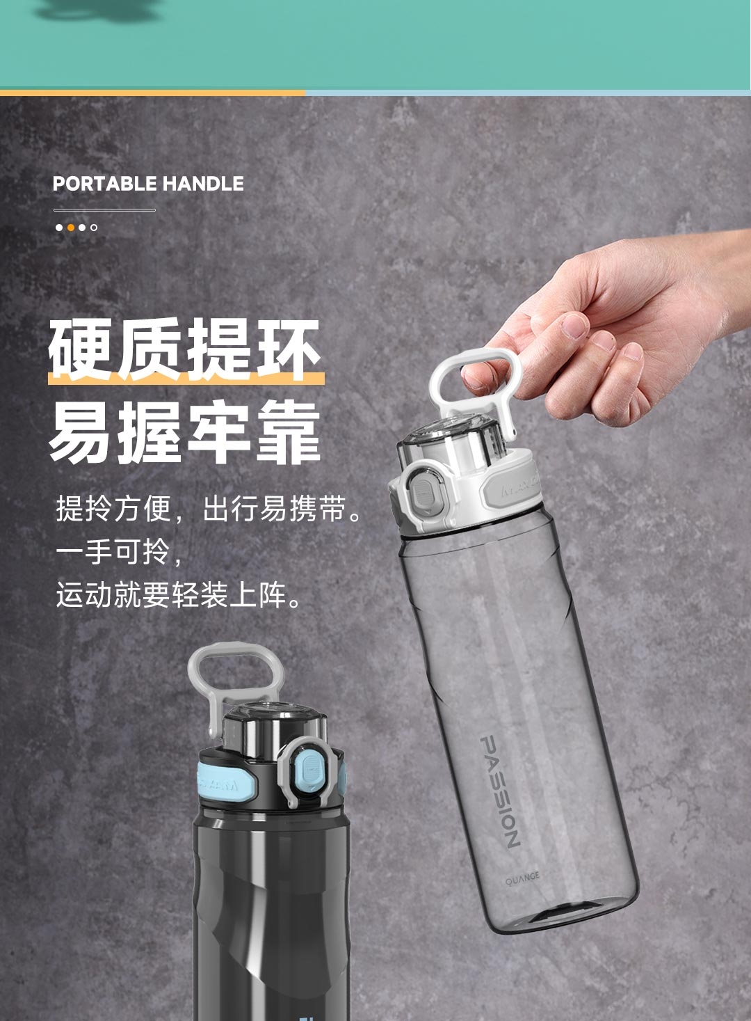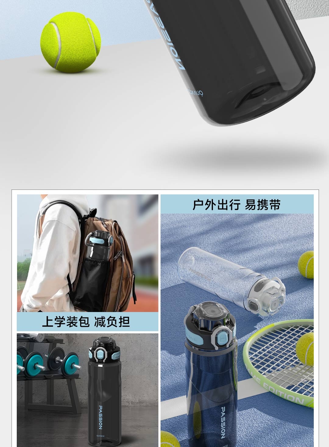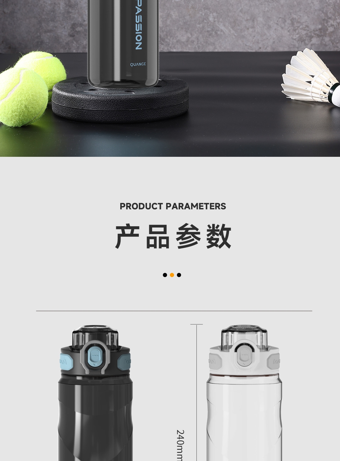 Tritan母婴材质;一键弹盖,双重锁扣;便携提环