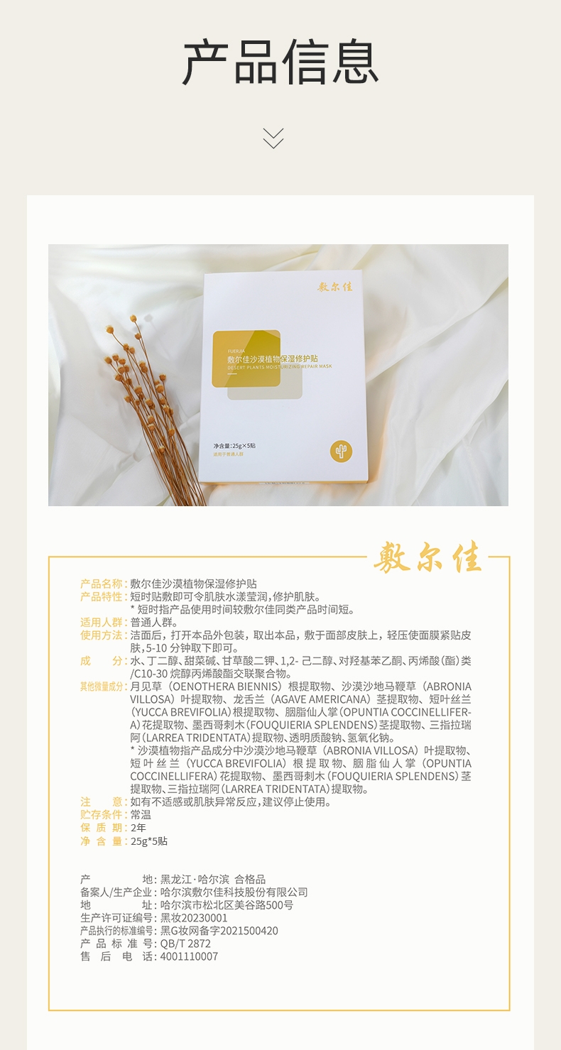 沙漠植物保湿修护贴+:26g*5贴/盒+150ml/瓶