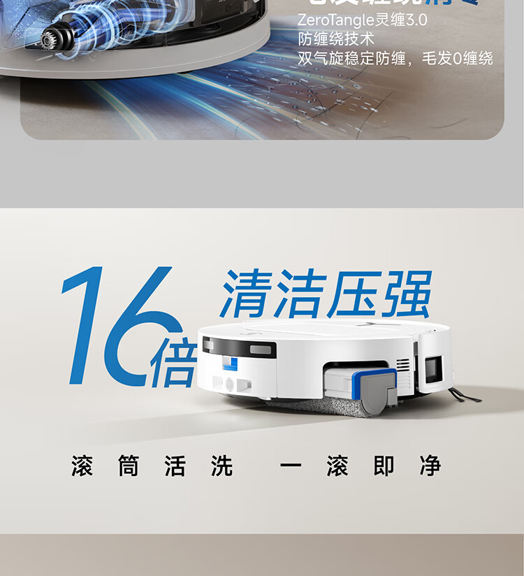 16倍清洁压强;滚筒活洗;一滚即净