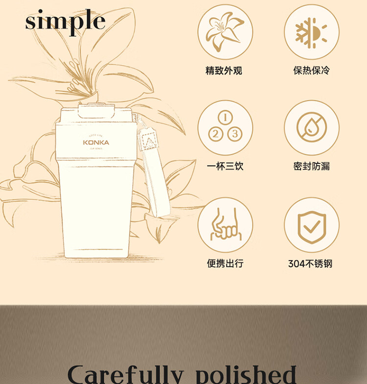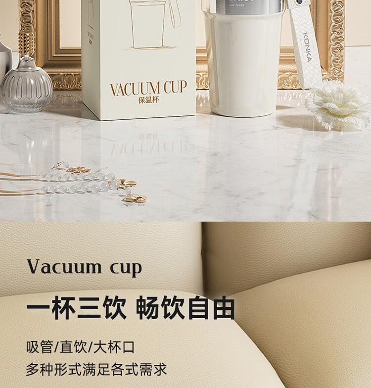 480ml容量,满足一天喝水需求;简约高级风,精致外观;三饮杯盖,怎么喝都满足