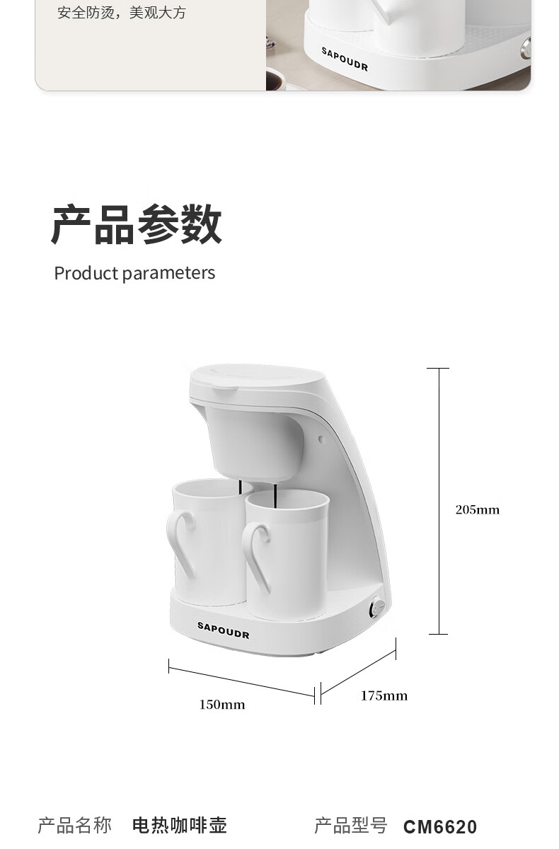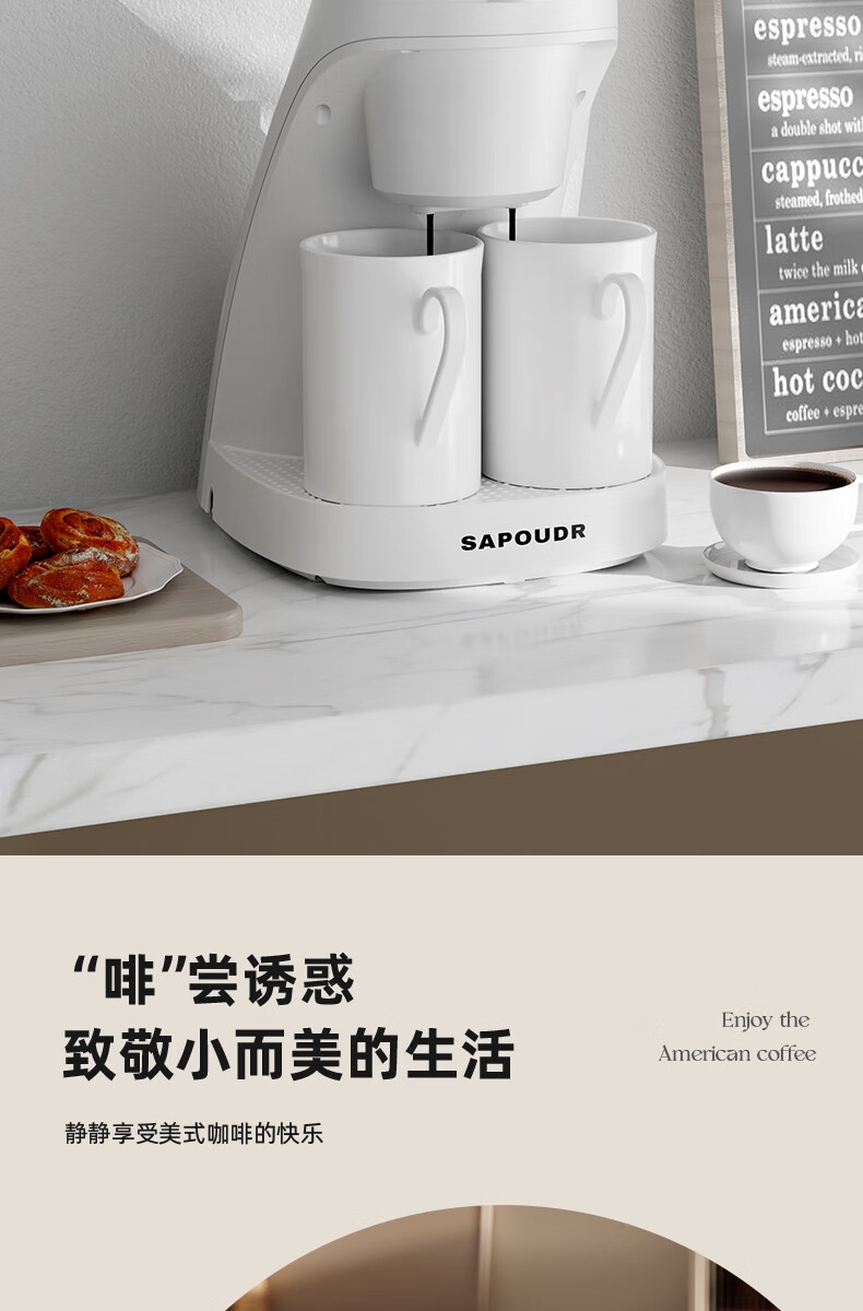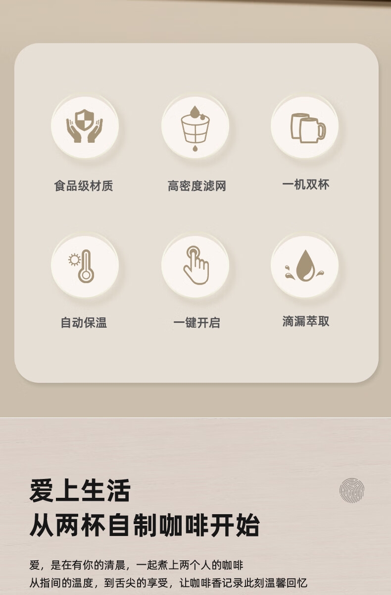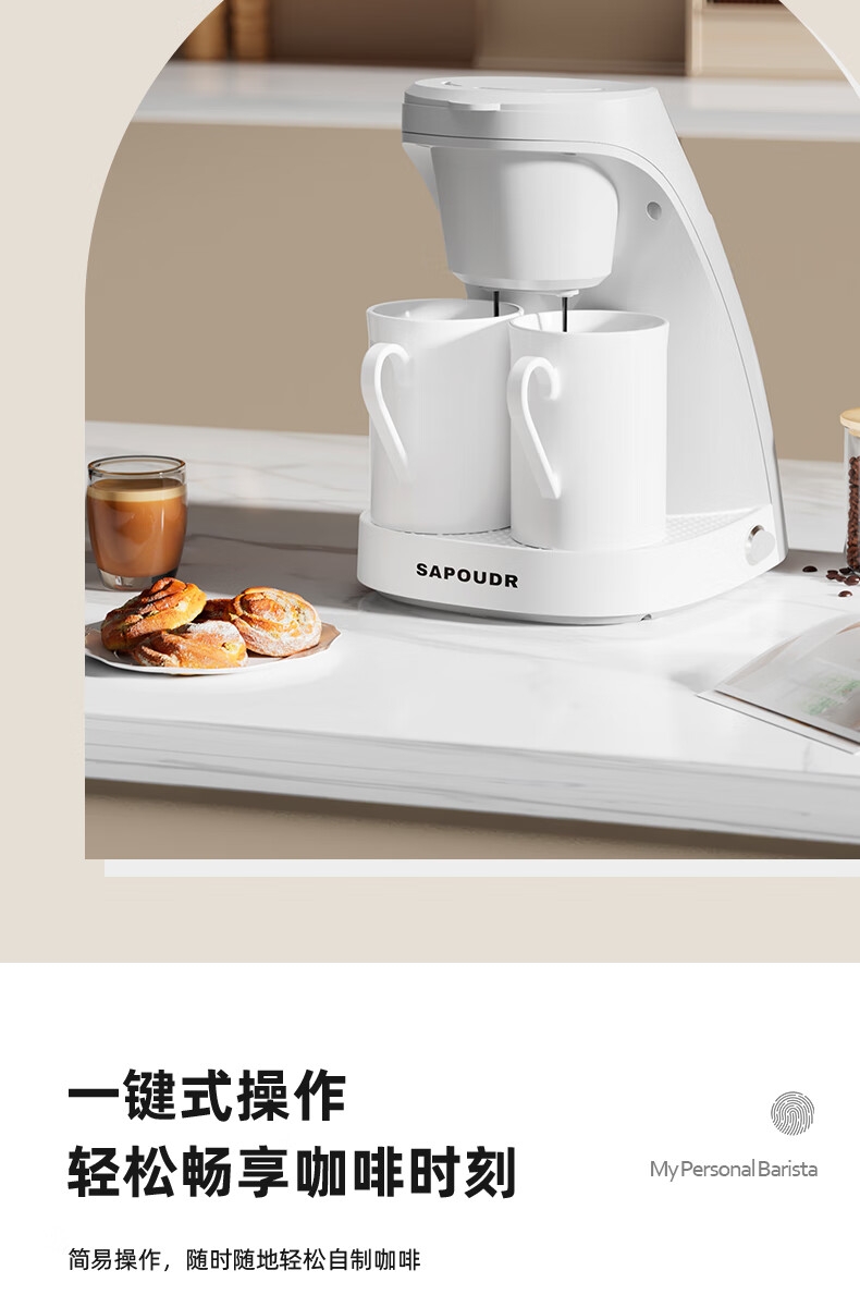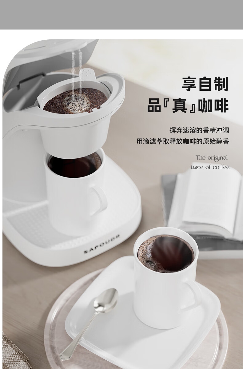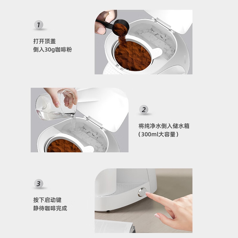 多孔均衡喷淋,粉水充分接触;一键式操作,轻松畅享咖啡时刻;可拆洗滤网,冲泡完成后可轻松拆下滤网