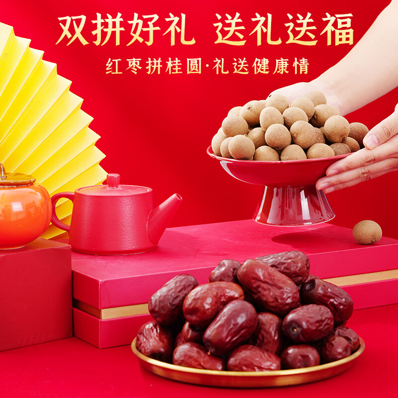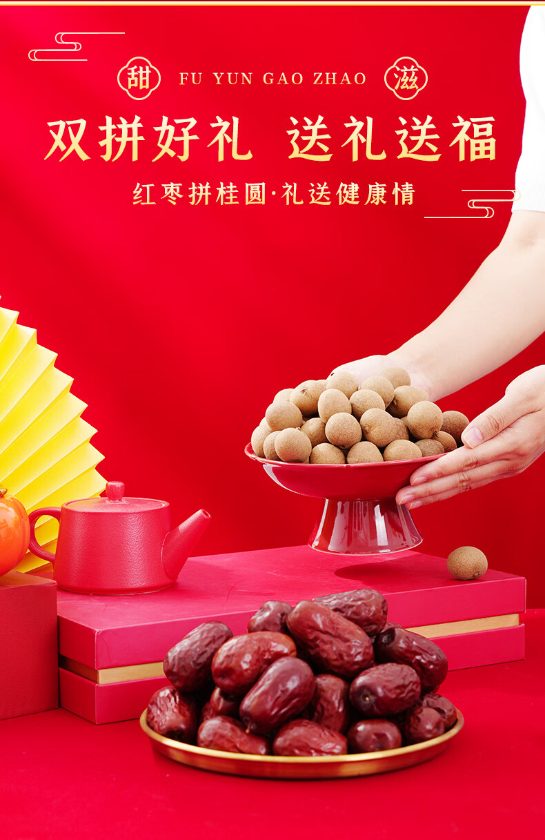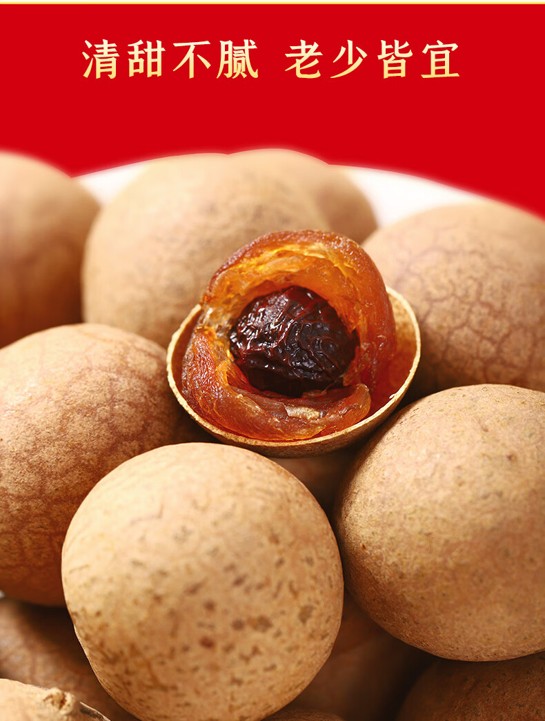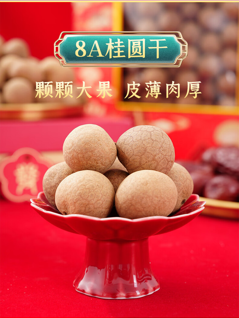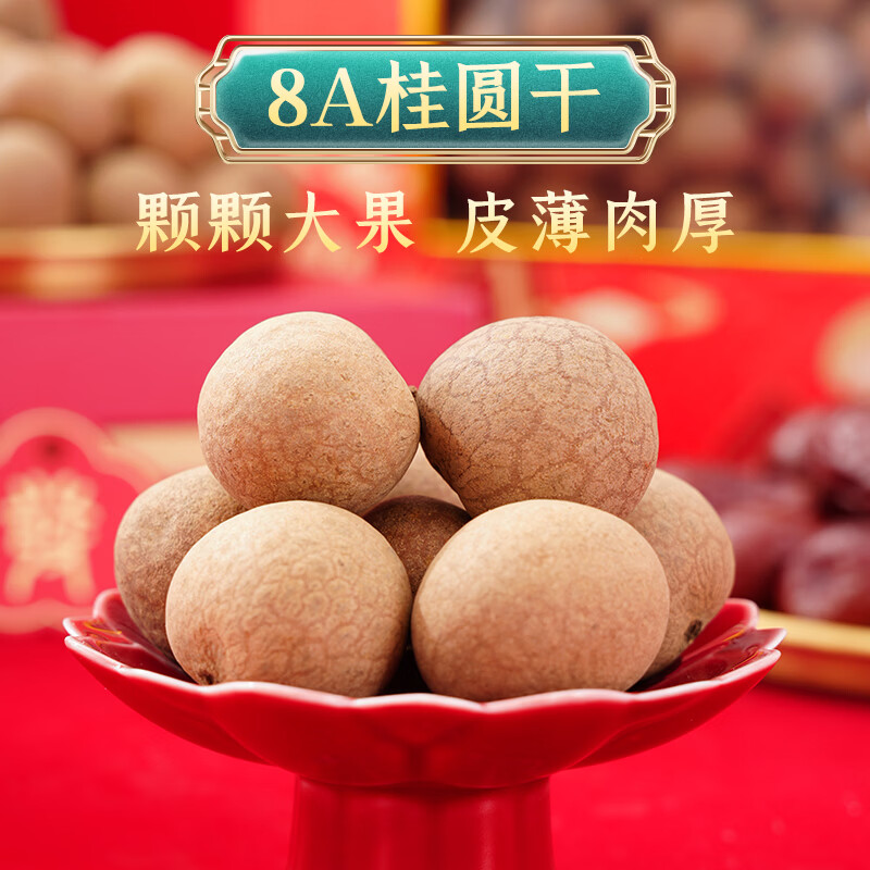 8A桂圆干,颗颗大果,皮薄肉厚;六星御枣,粒大饱满,皮薄核小;红枣拼桂圆,礼送健康情