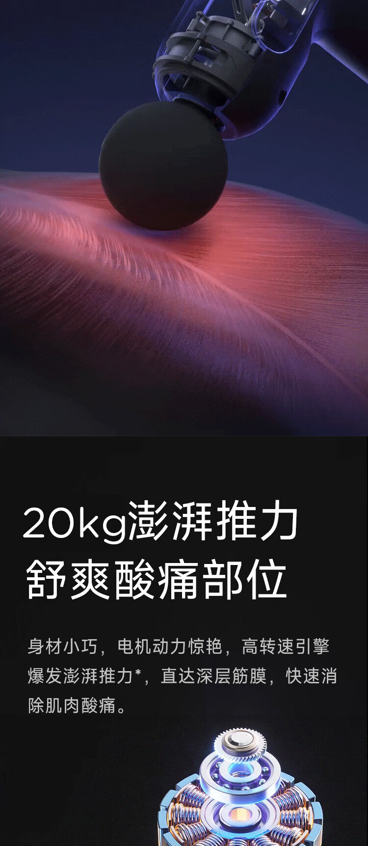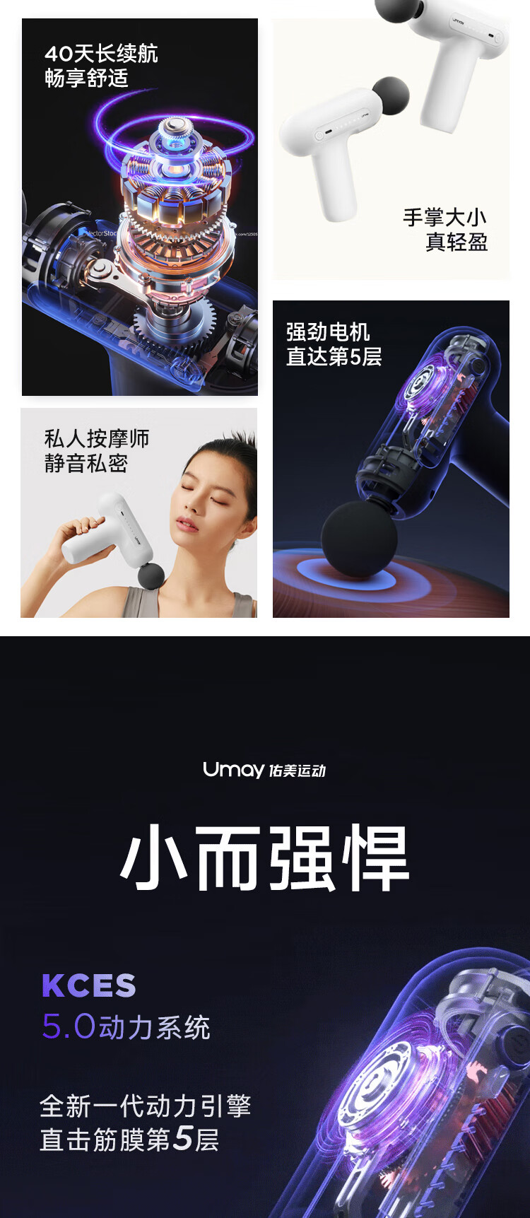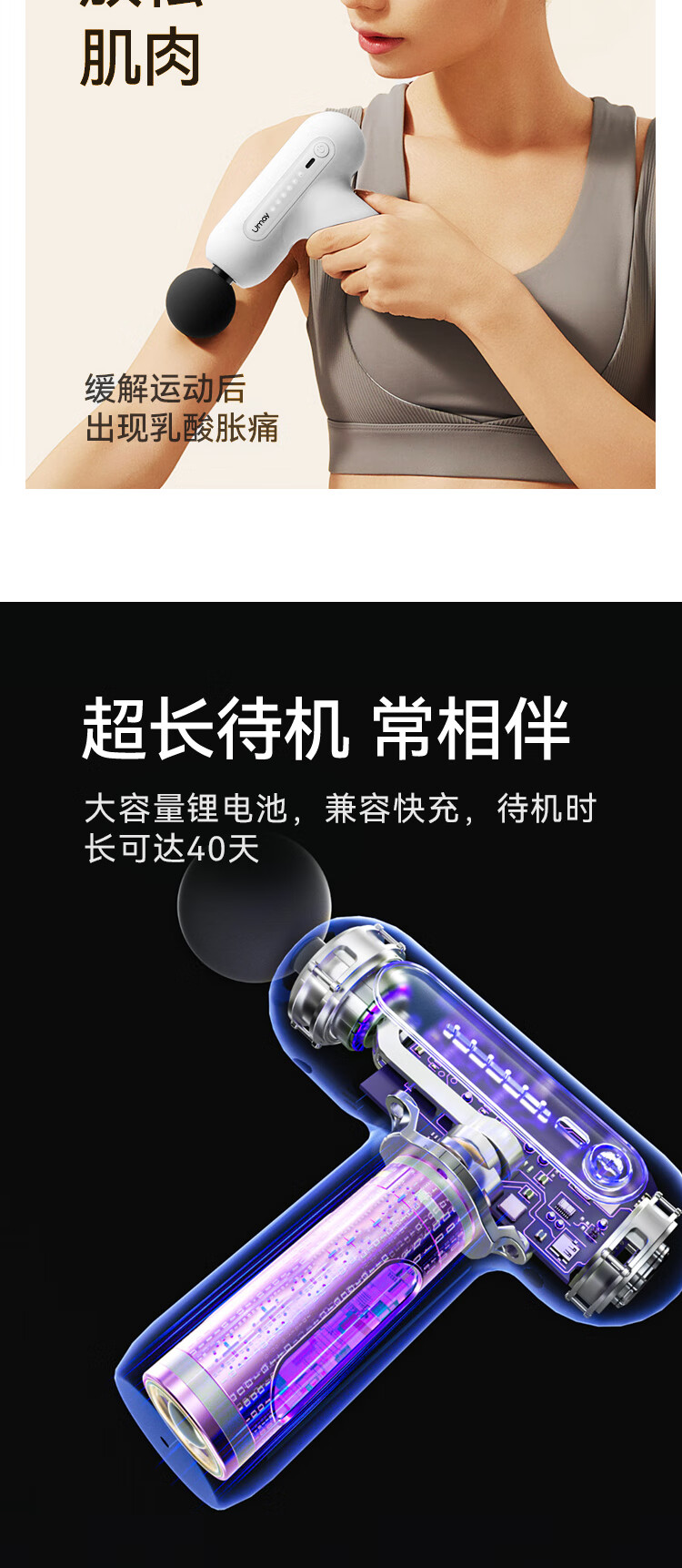 便携小巧,单手轻松操作;小巧强悍,专业按摩;大容量锂电池,兼任快充,待机可达40天