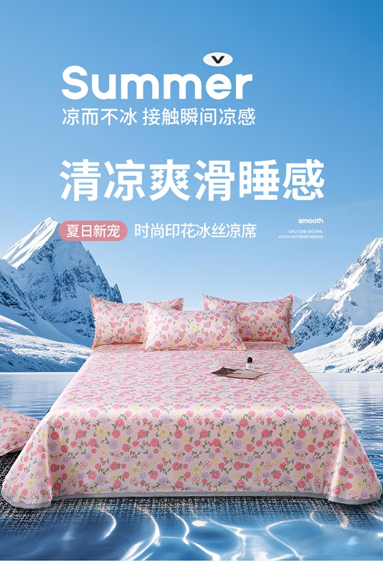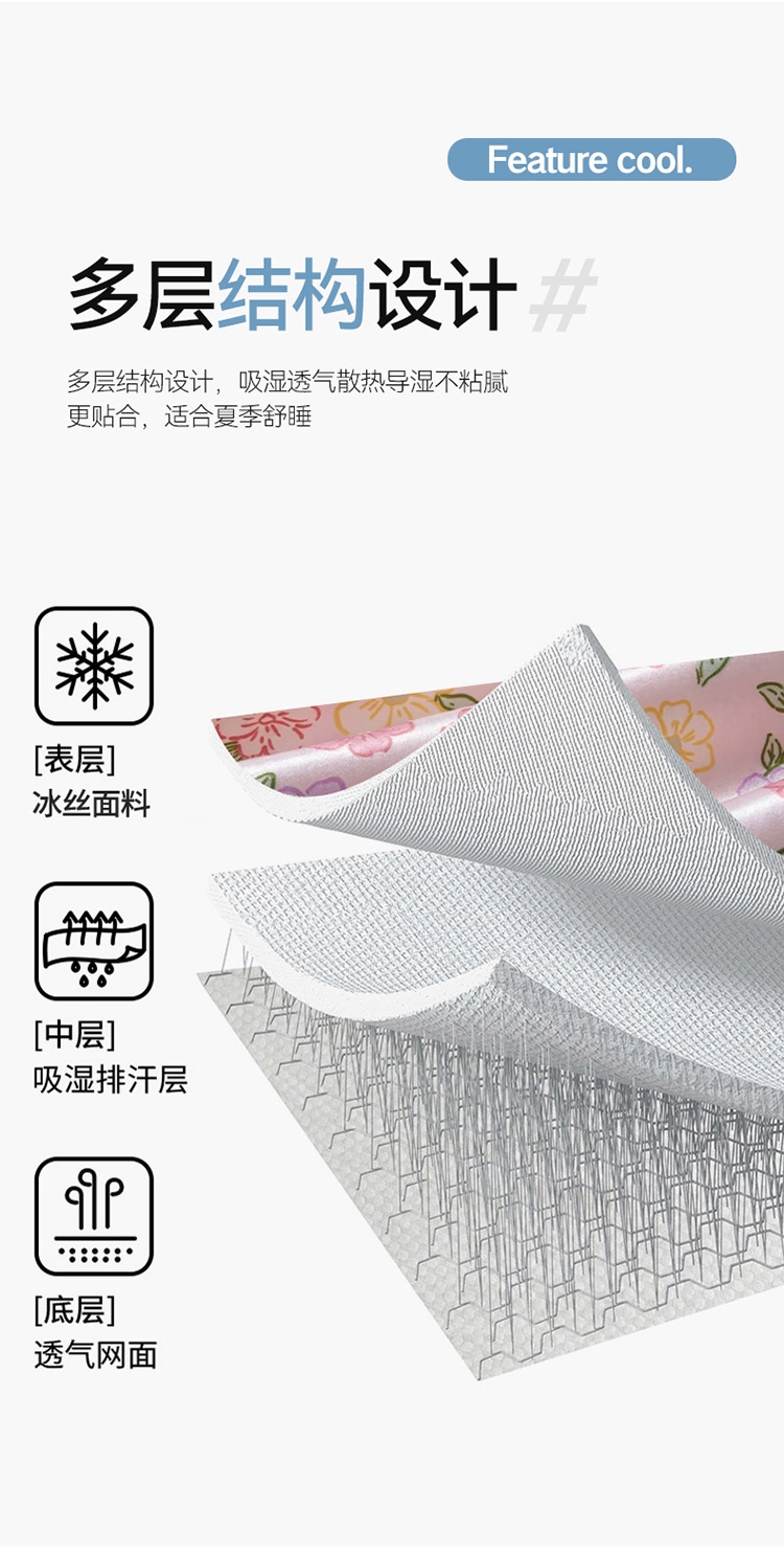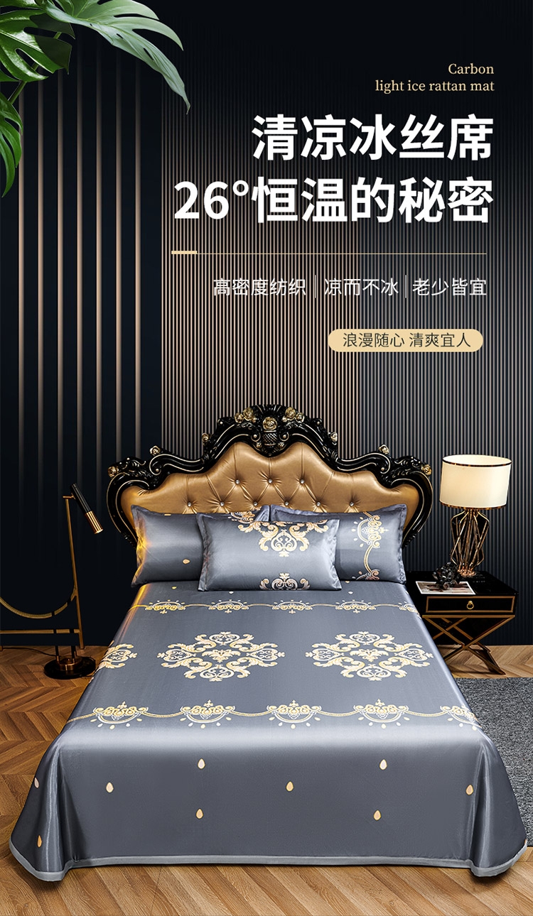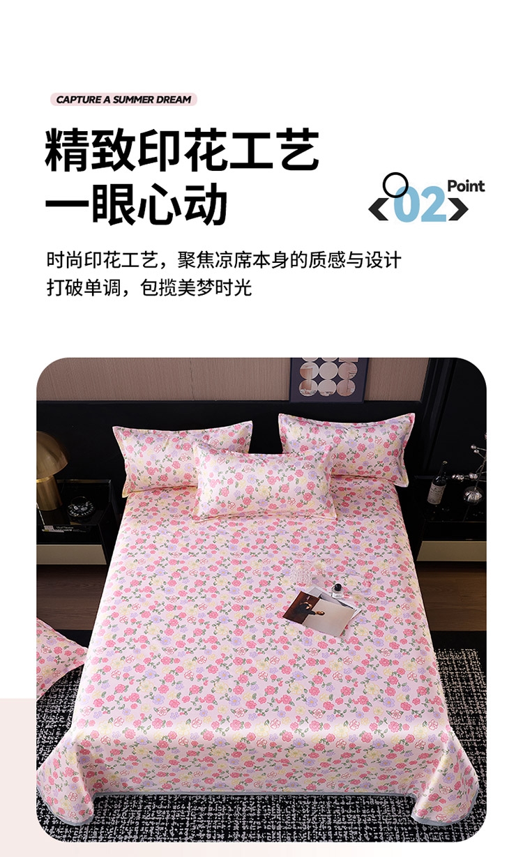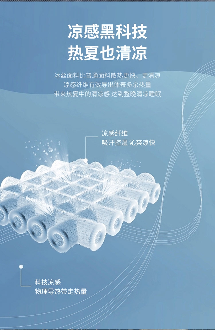 为你凉身打造比普通面料更凉快,;不闷不燥不粘腻,宜人体感,清凉不沾身;时尚印花工艺,聚焦凉席本身的质感与设计打破单调,