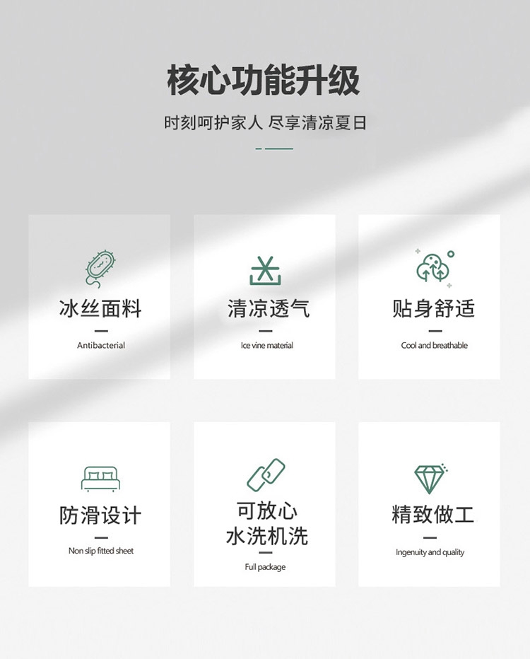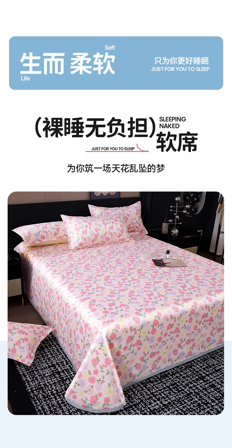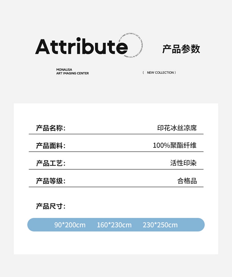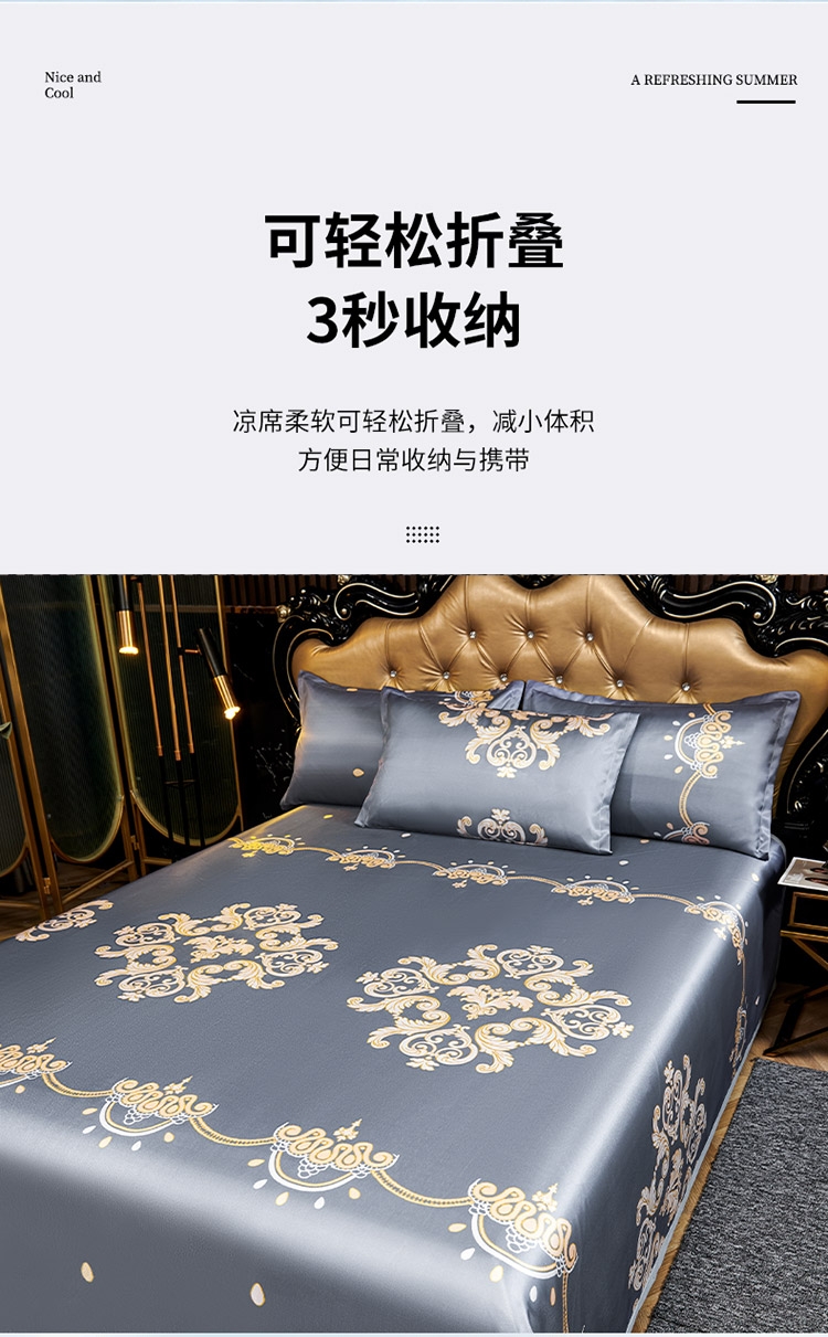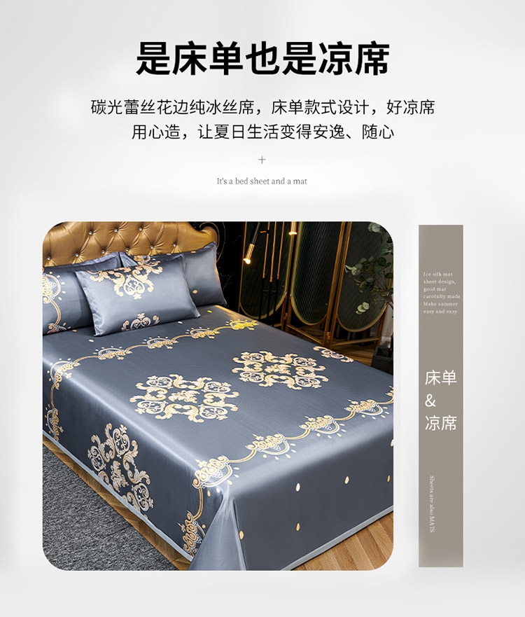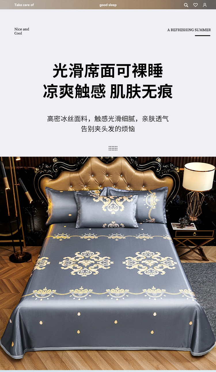 为你凉身打造比普通面料更凉快,;不闷不燥不粘腻,宜人体感,清凉不沾身;时尚印花工艺,聚焦凉席本身的质感与设计打破单调,