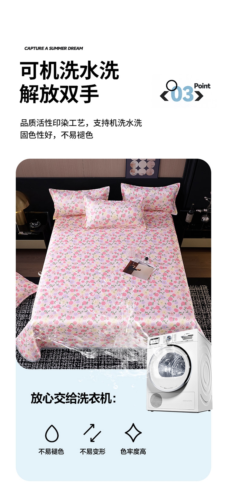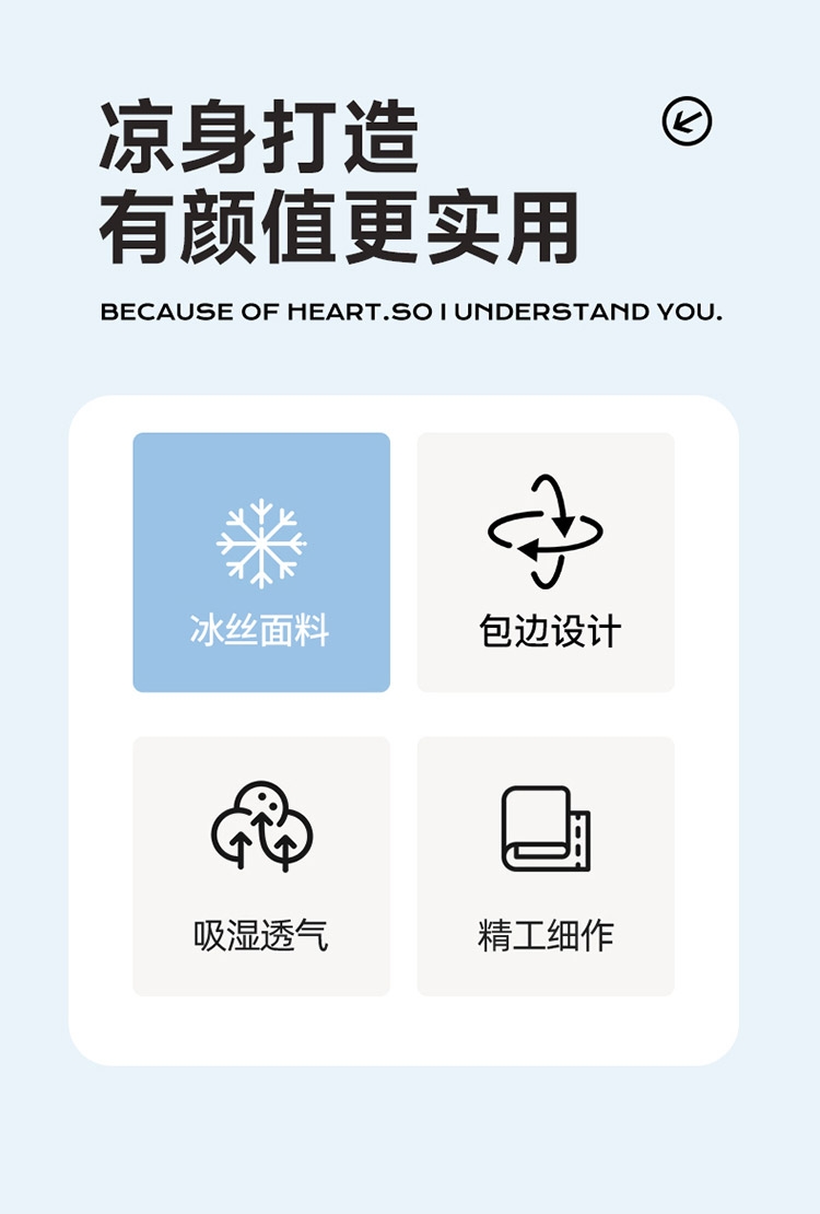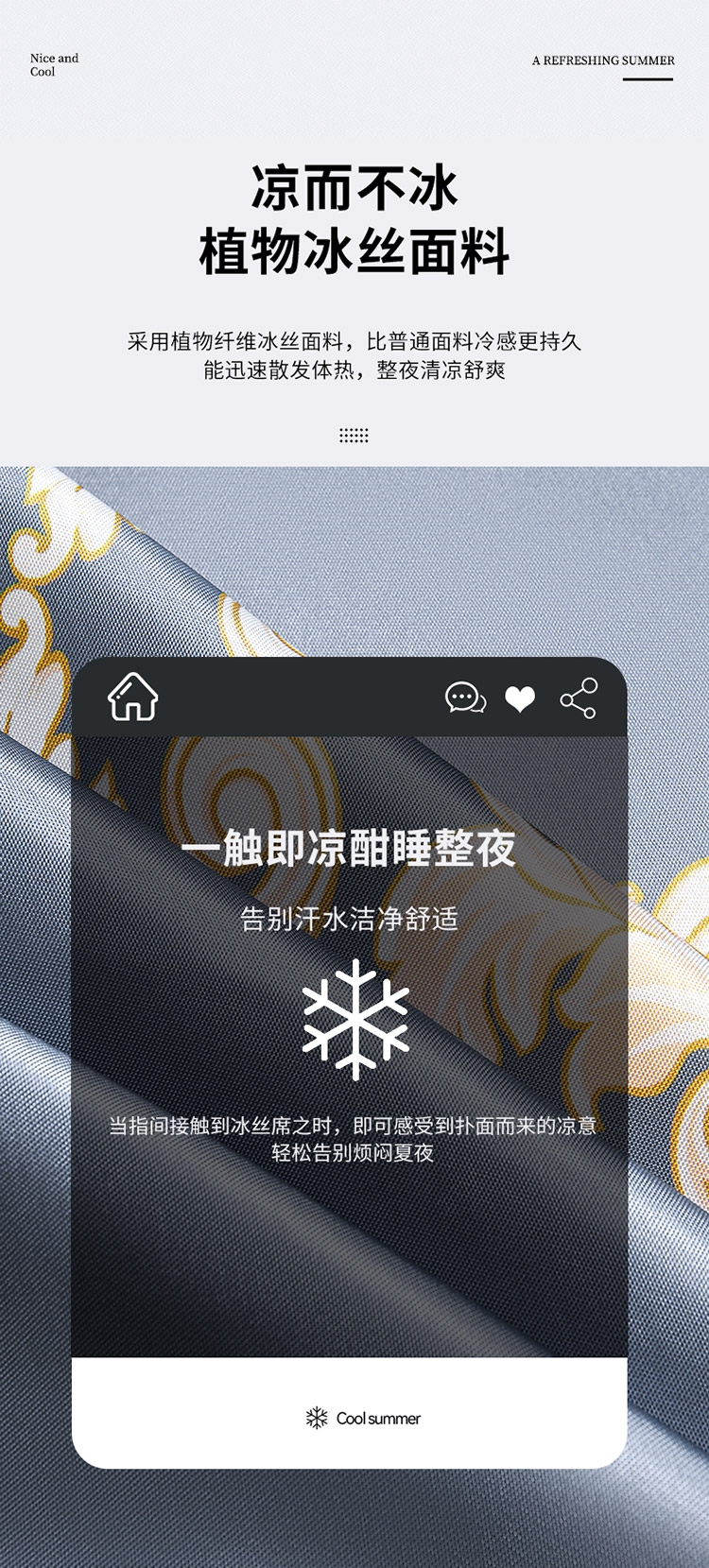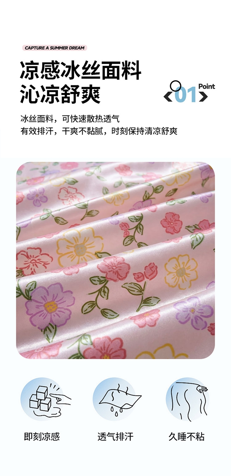 为你凉身打造比普通面料更凉快,;不闷不燥不粘腻,宜人体感,清凉不沾身;时尚印花工艺,聚焦凉席本身的质感与设计打破单调,