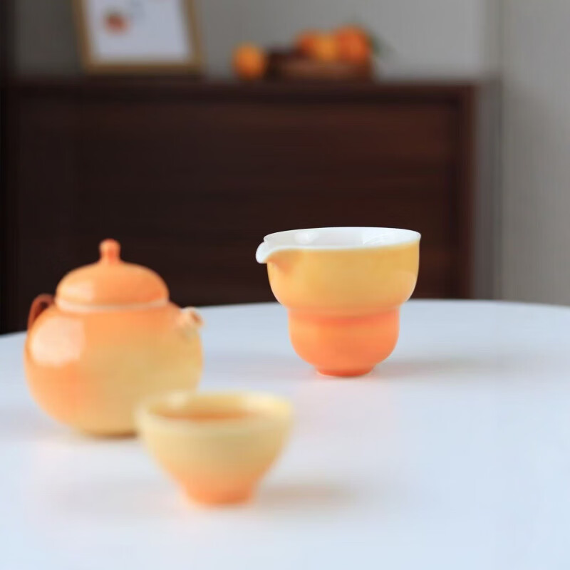 渐变橙,高颜值茶具;方便携带;东方国潮,聚匠心之巧