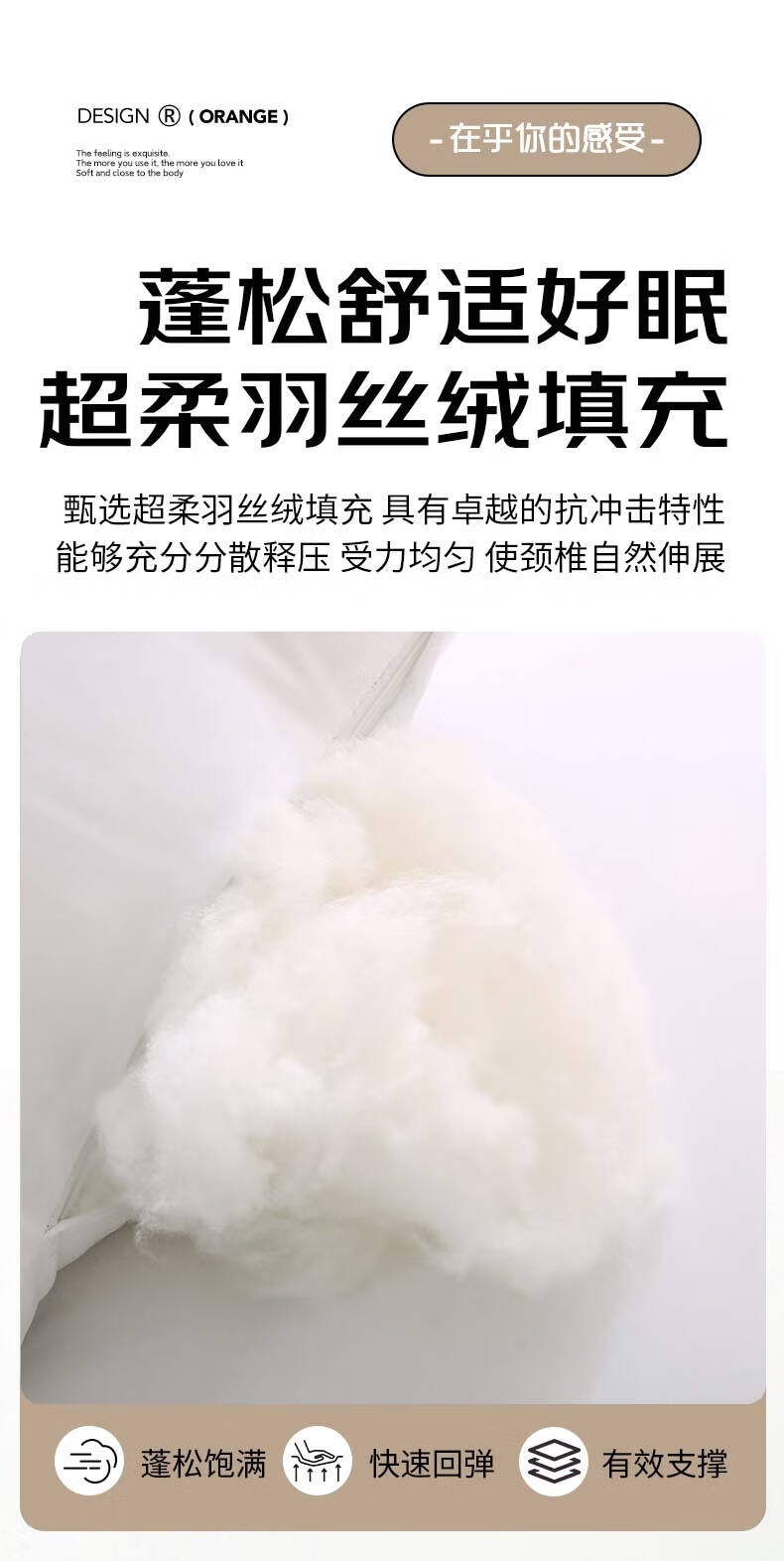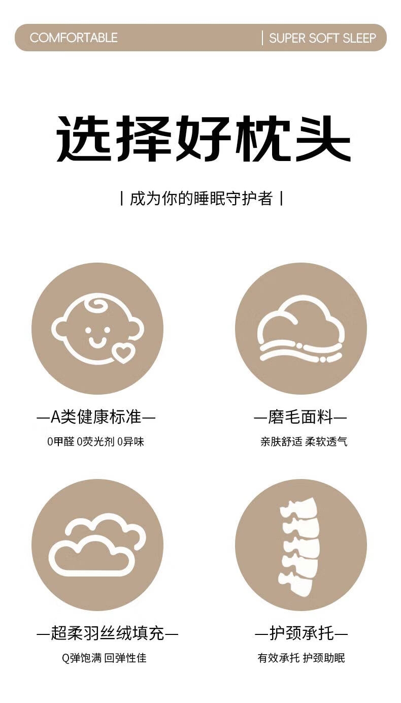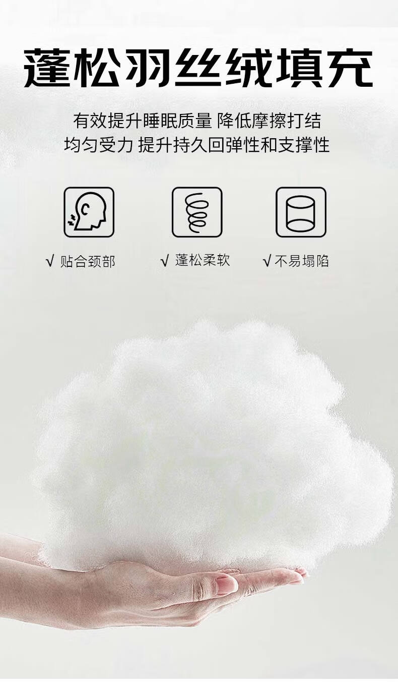5A抗菌黑科技,抑制多种细菌的滋生;甄选高回弹羽丝绒填充,让枕头蓬松柔软;严选亲肤磨毛面料,高支高密,手感细腻柔软