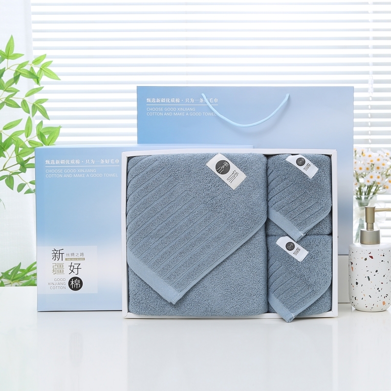 奥来纯 纯棉素锦浴巾毛巾方巾三件套礼盒