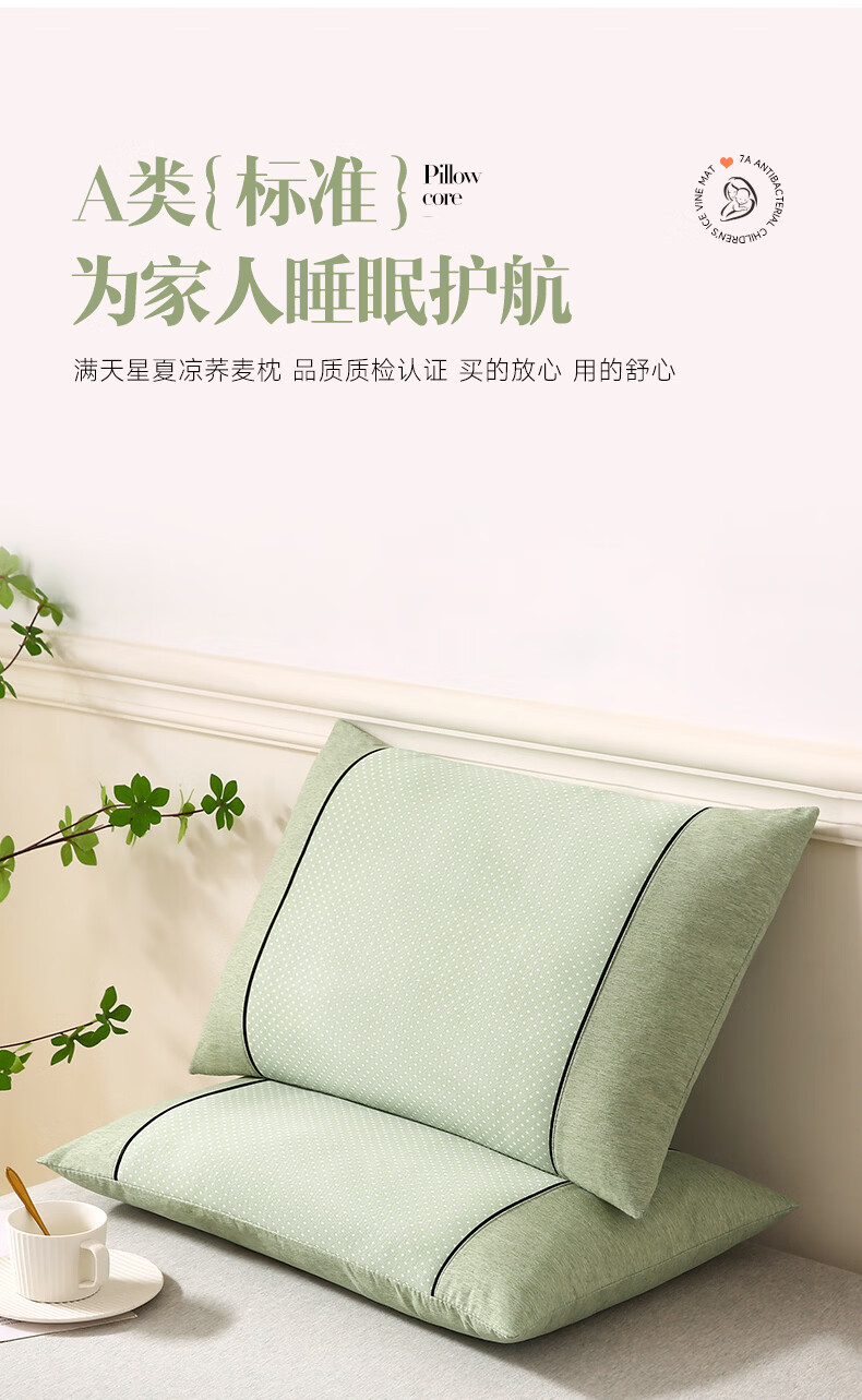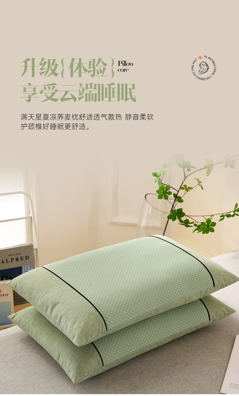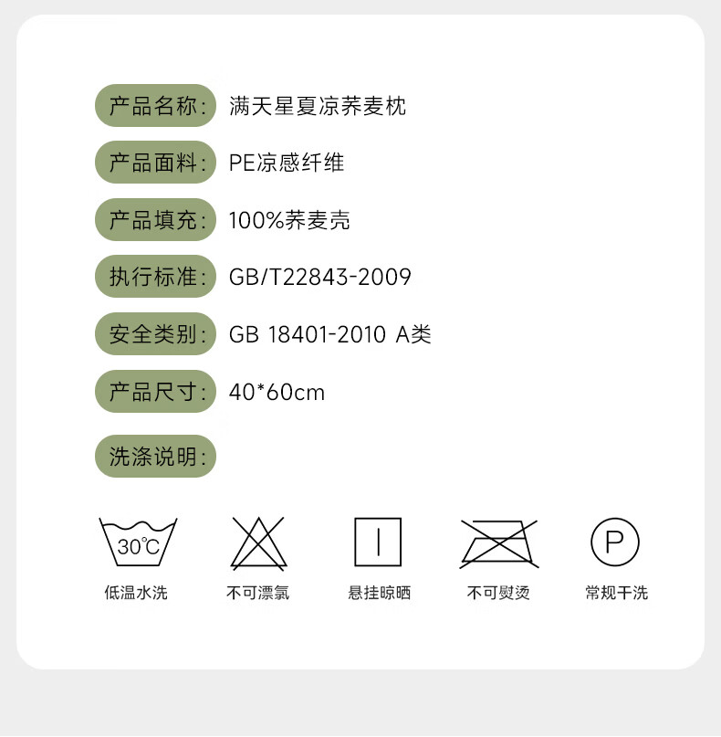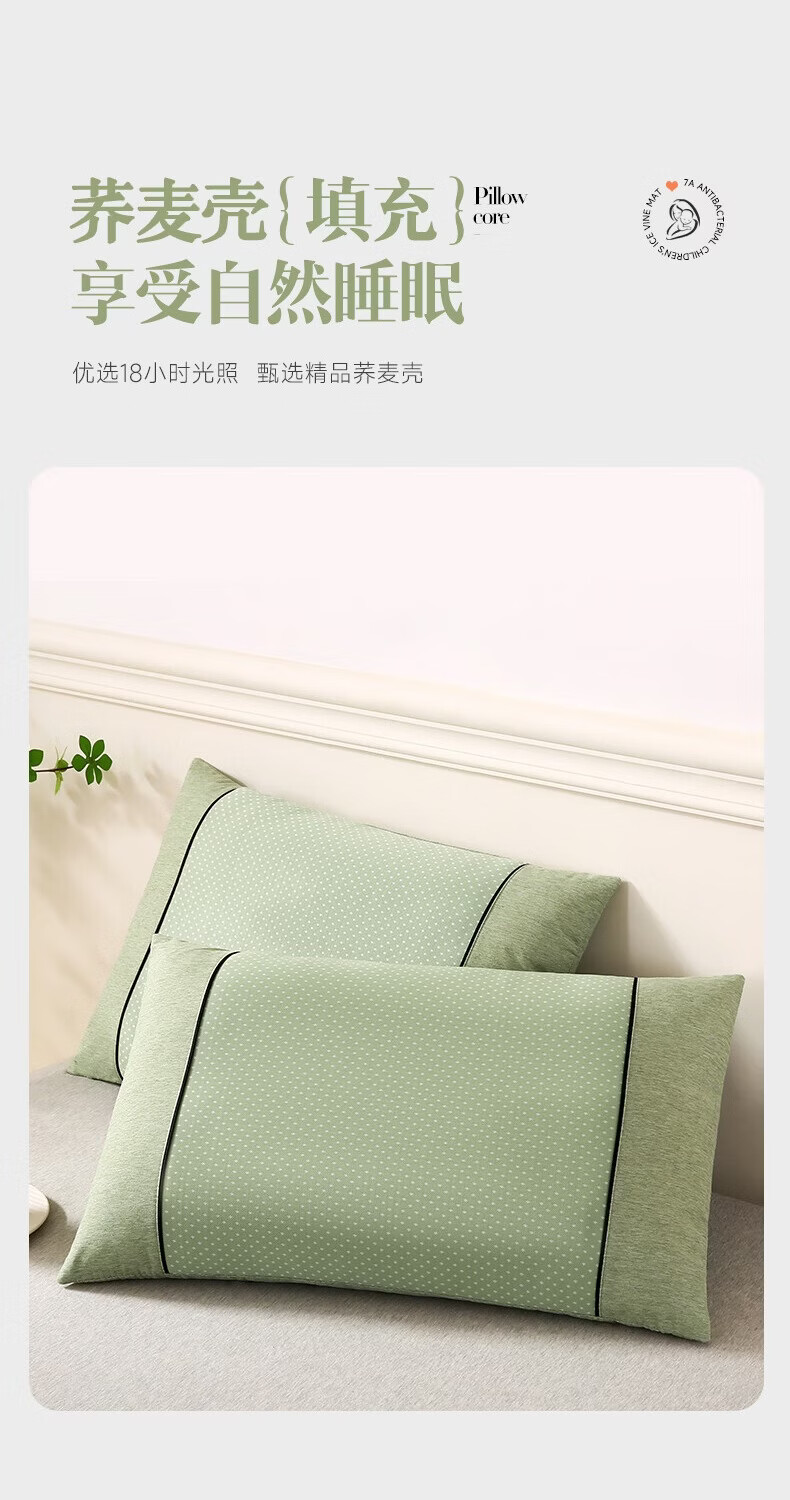 天然荞麦芯,透气舒爽内部填充优质荞麦壳;PE 凉感面料,清凉黑科技采用创新 PE 凉感面料;凉感清爽不刺骨,告别夏日闷热,整夜舒适好眠