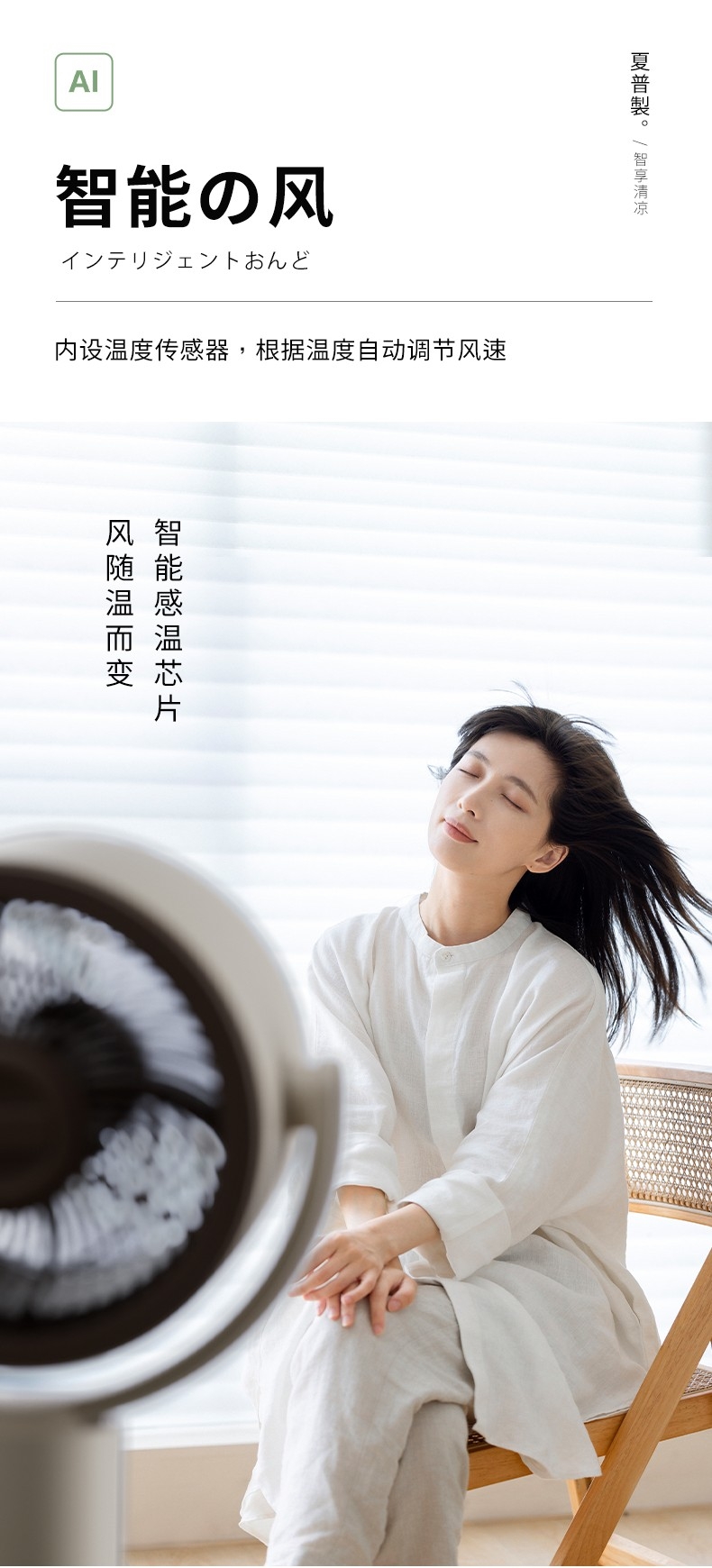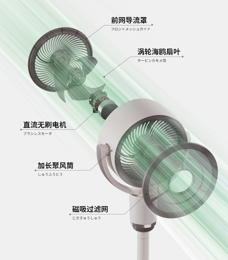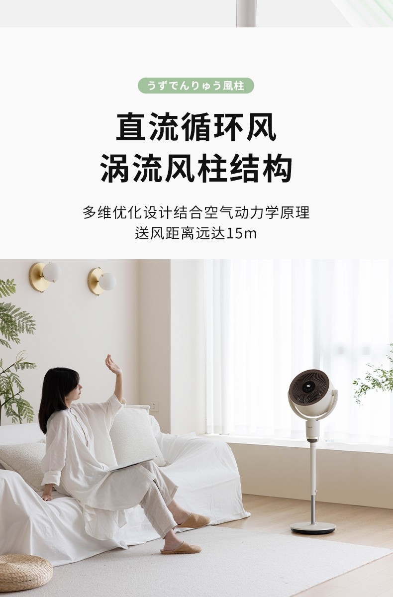 可升降立杆,满足不同场景需求;多重操控方式:按键式+语音声控+遥控;3片仿生羽翼扇叶,柔风不生硬