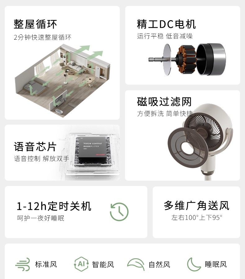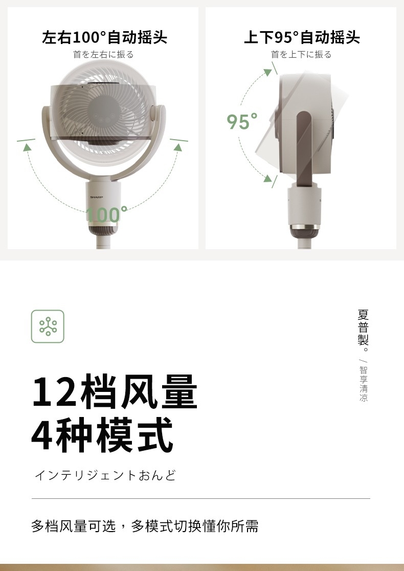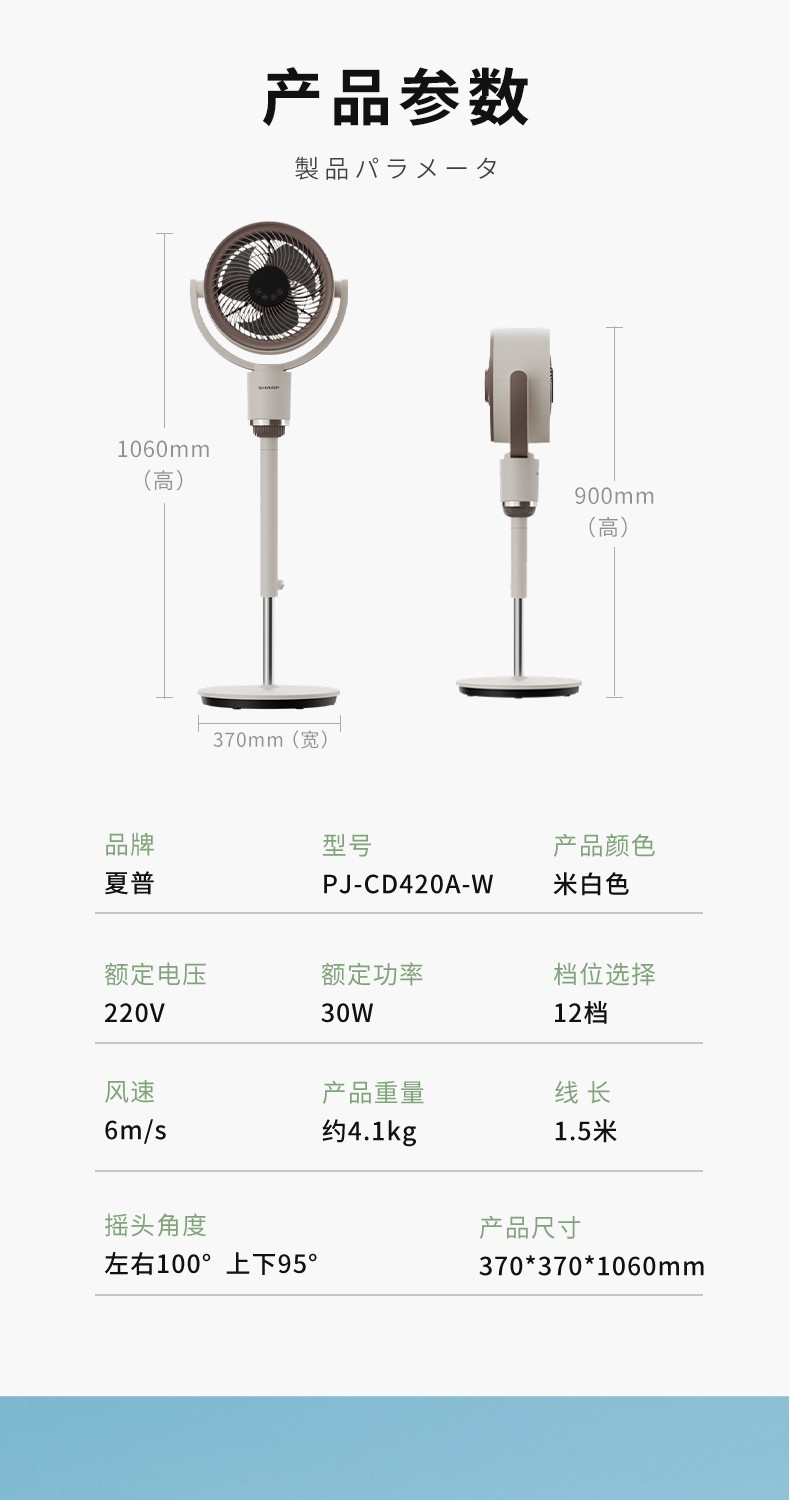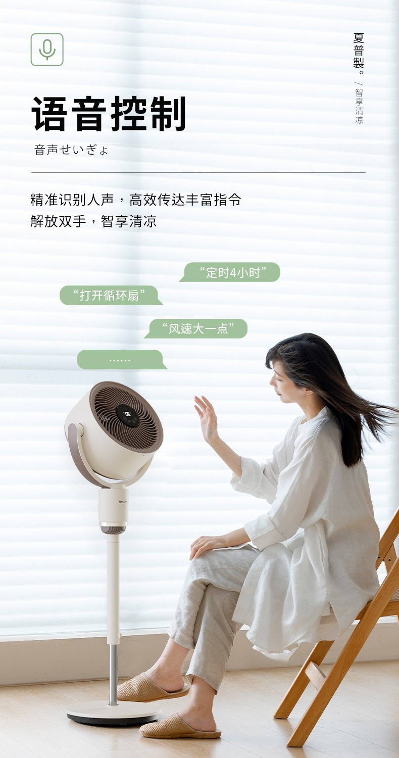 夏普 台立两用智能语音遥控循环扇PJ-CD420A-W