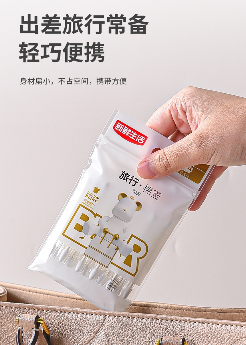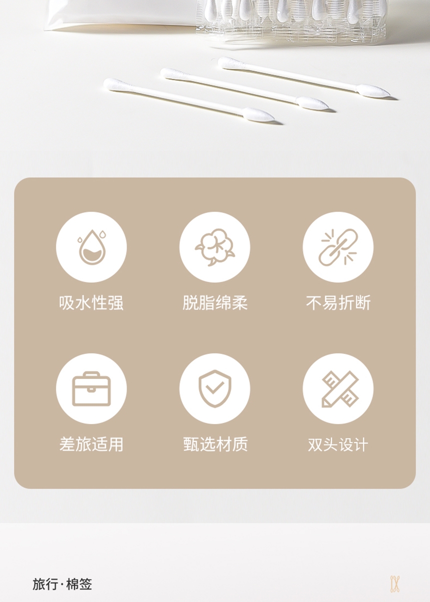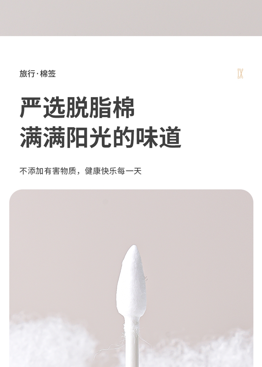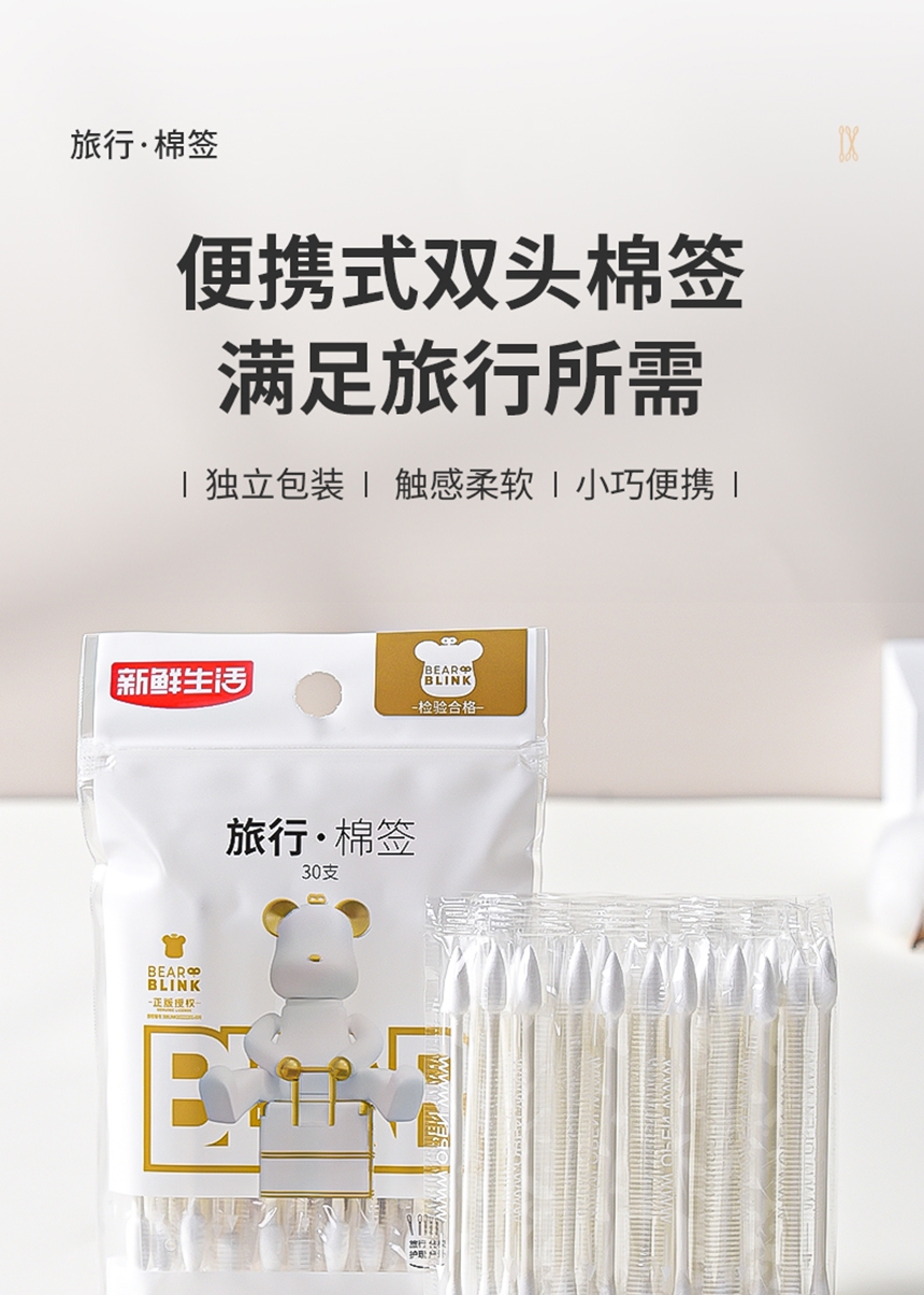 便携式双头棉签 满足旅行所需;独立包装 触感柔软 小巧便捷;出差旅行常备 轻巧便捷