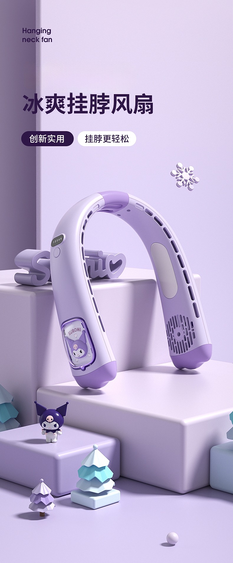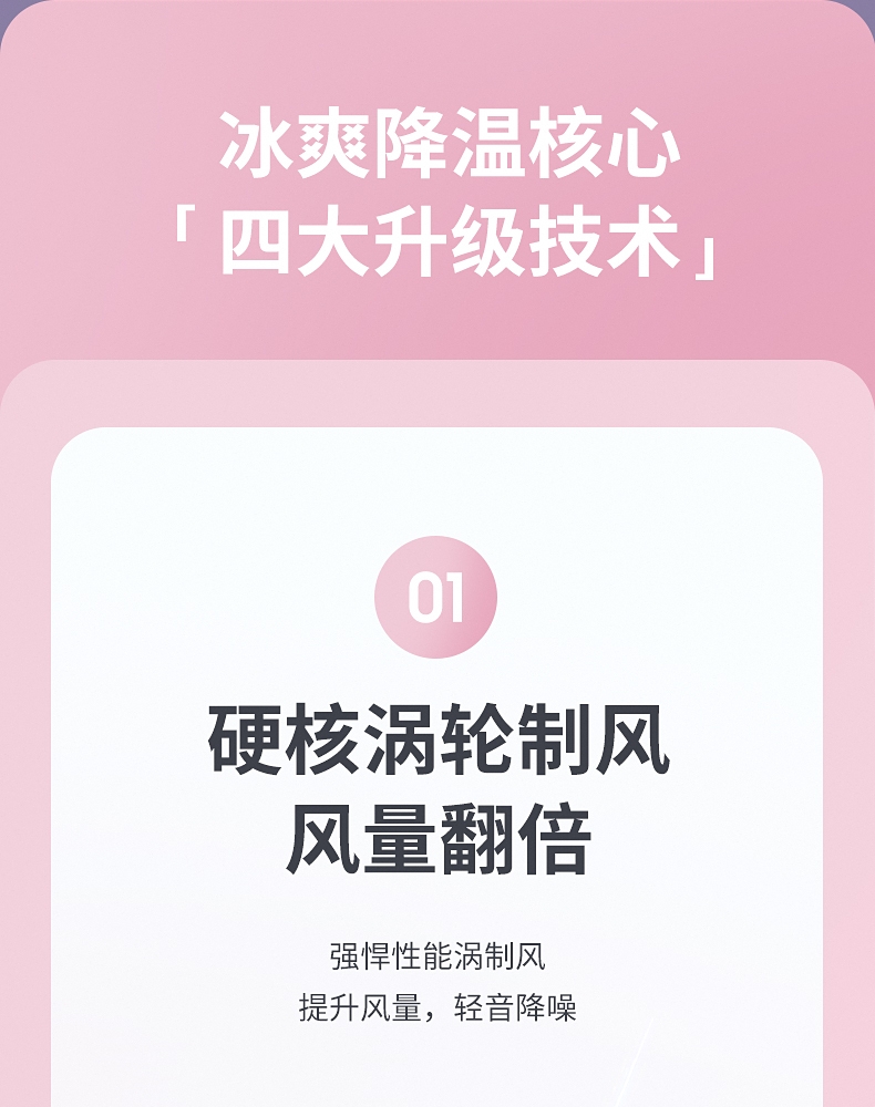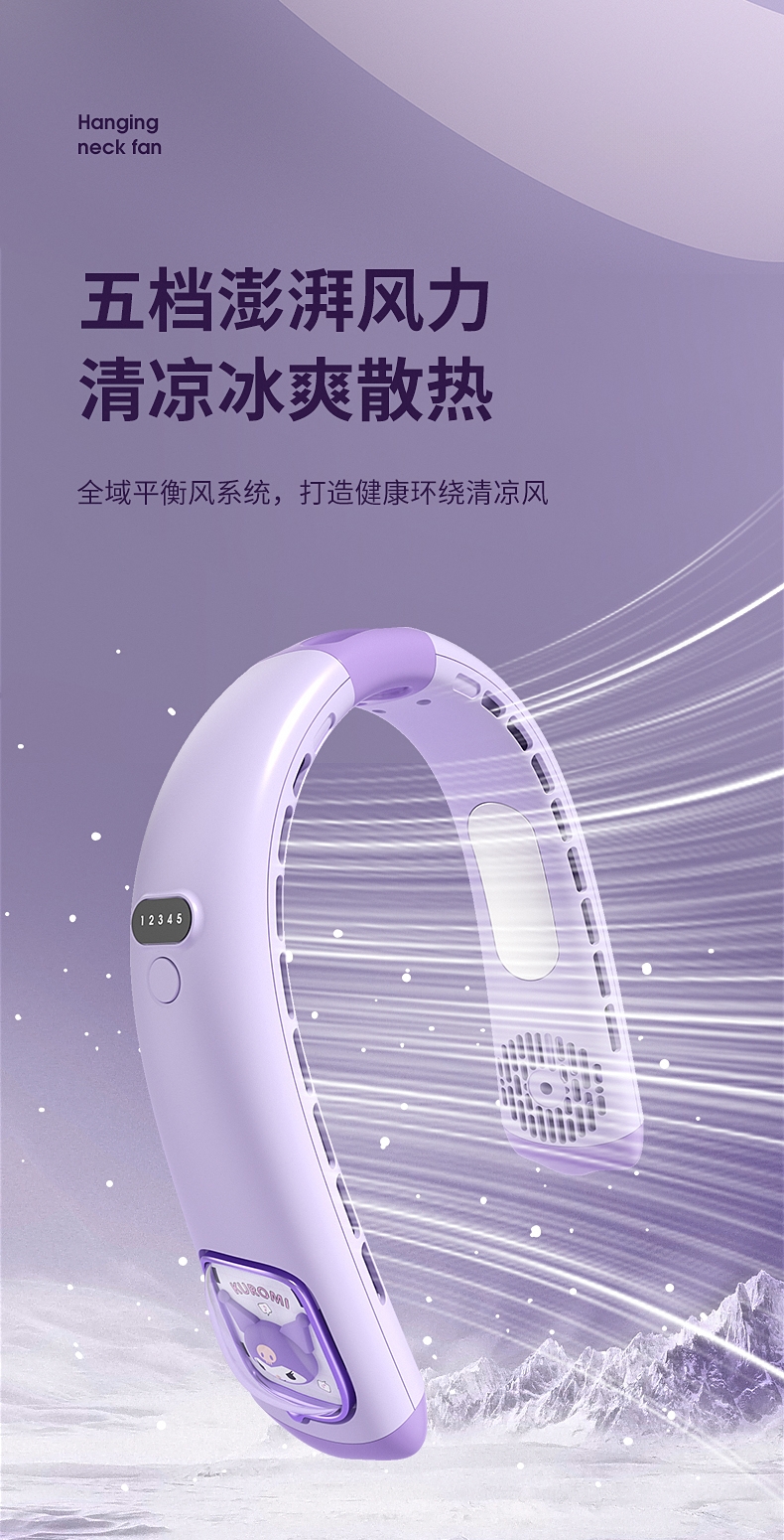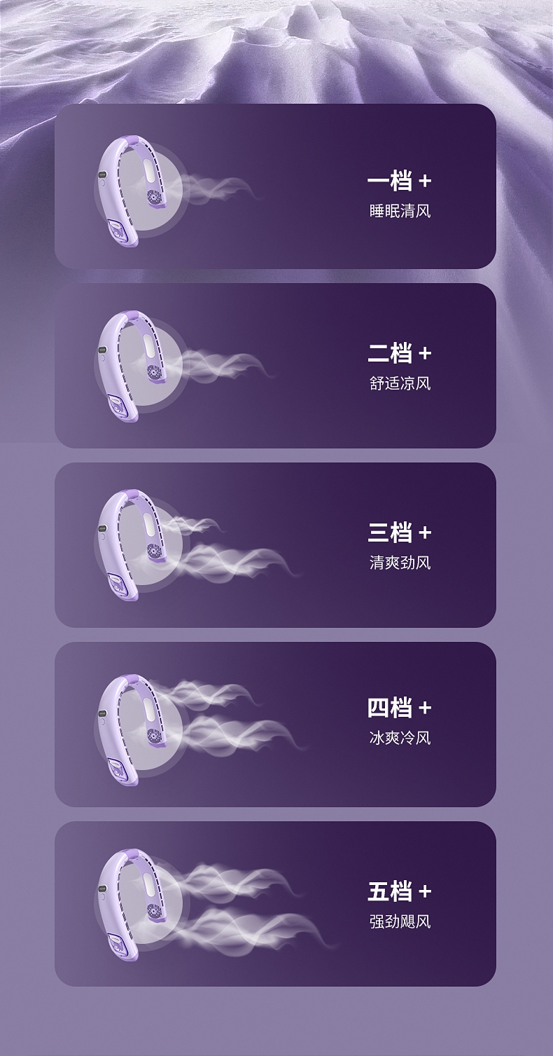模拟自然风,畅爽清凉;五档风速,数显档位;轻音柔风,轻巧便携