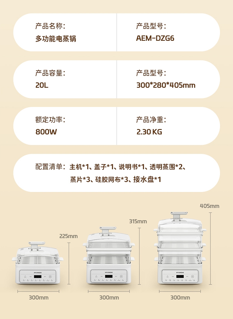 HYUNDAI 多功能电蒸锅AEM-DZG6