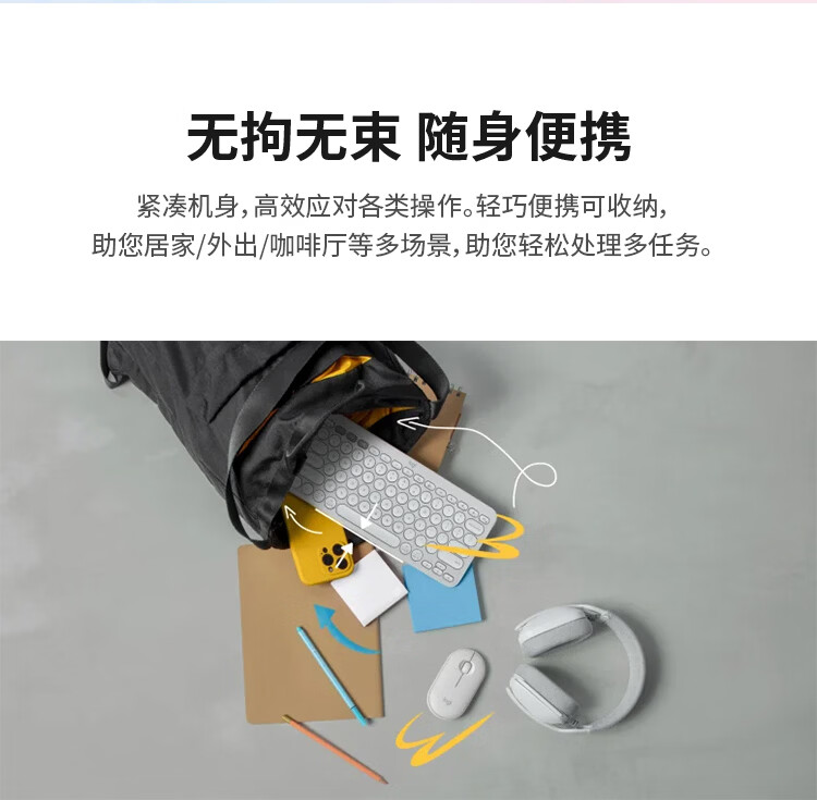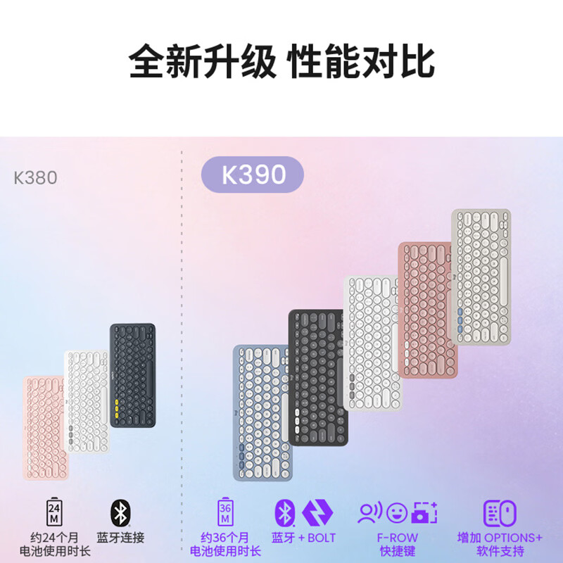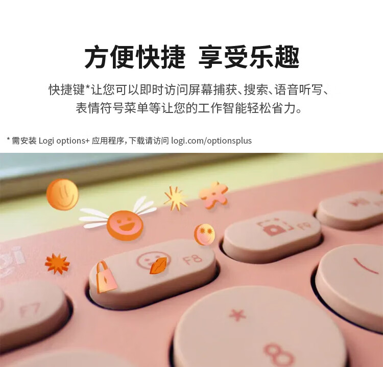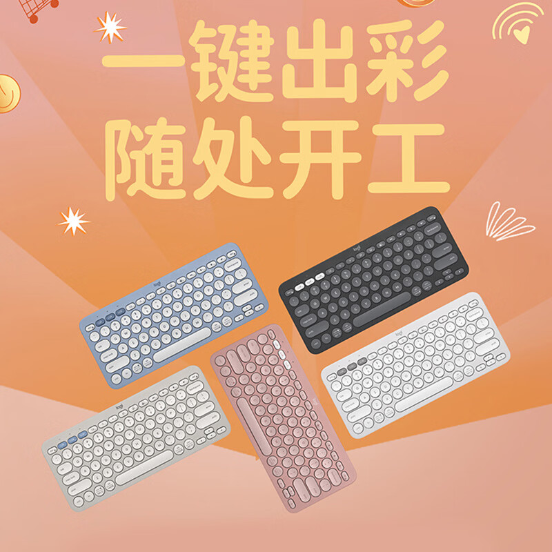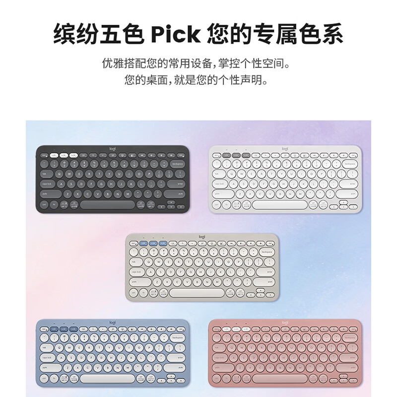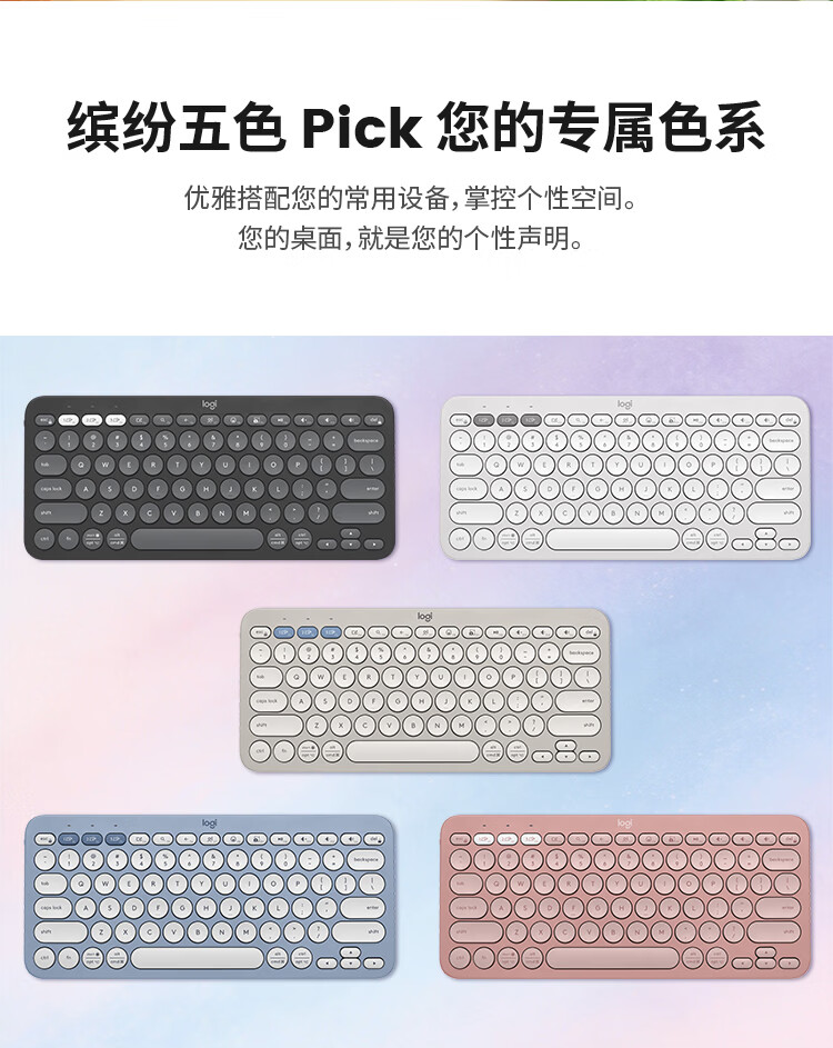 轻薄环保:极简纤薄设计,含回收塑料材质;多屏切换:Easy-Switch 一键切换三台设备;静音输入:敲击安静舒适,专注高效;超长续航:电池寿命长达36个月;logi options+支持:为特定应用程序或操