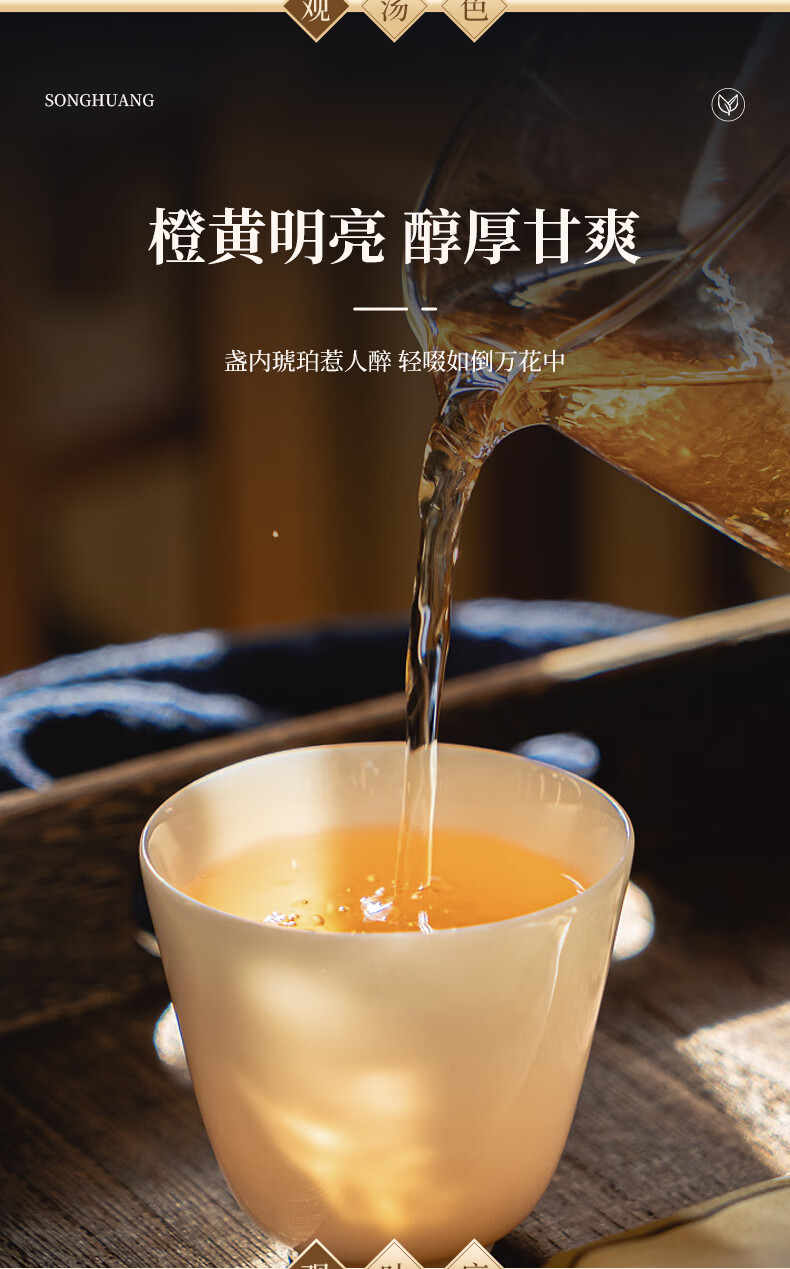 茶韵涌动,醇厚温润;条索紧结,匀称细直;橙黄明亮,醇厚甘爽