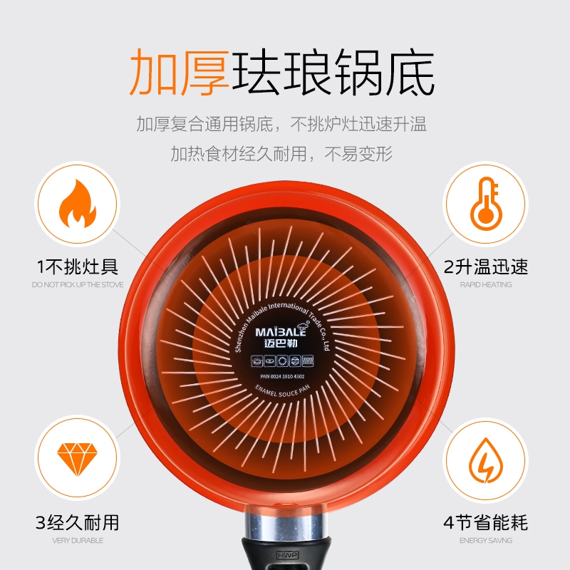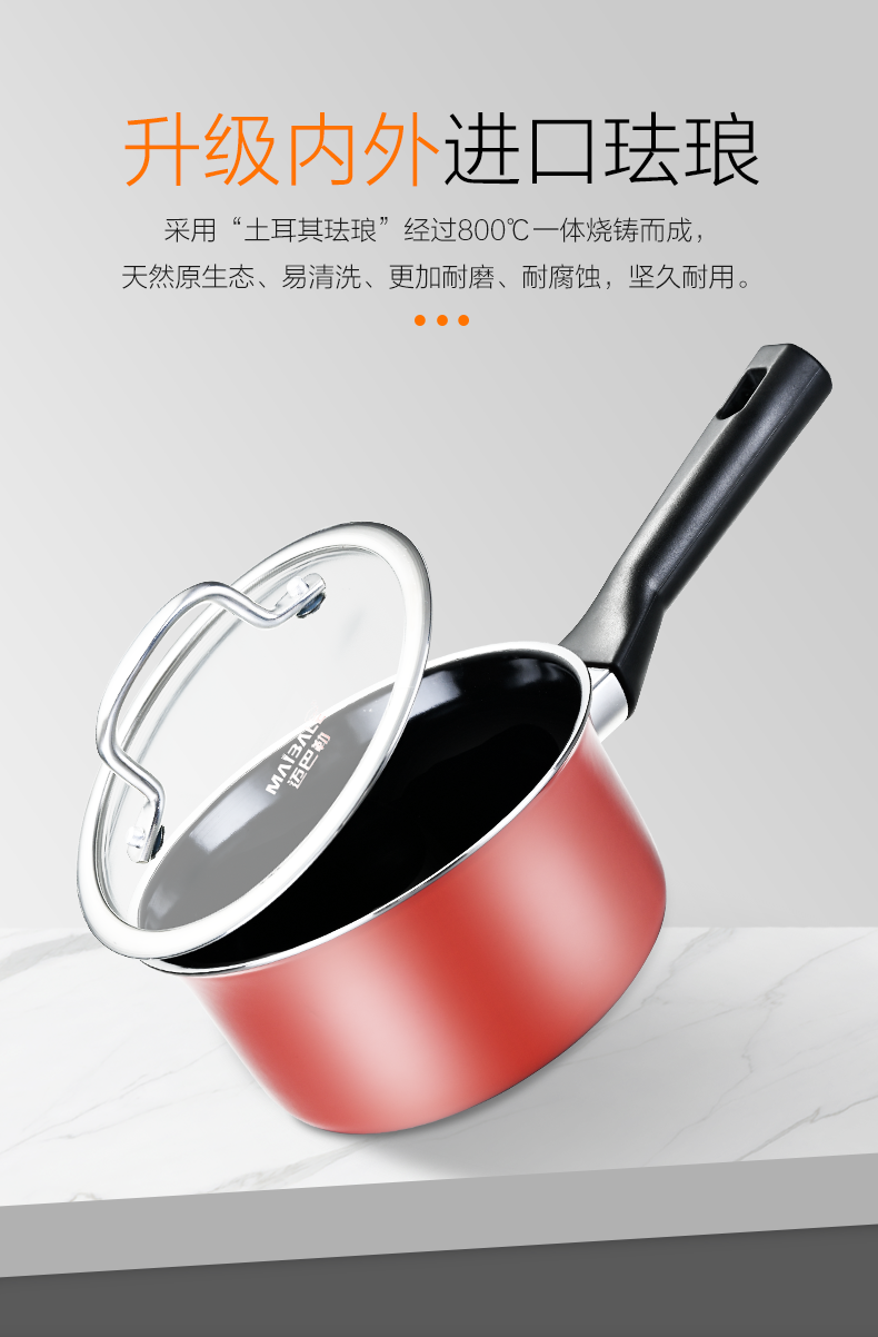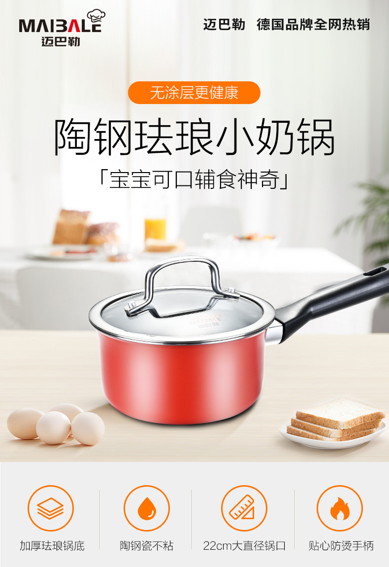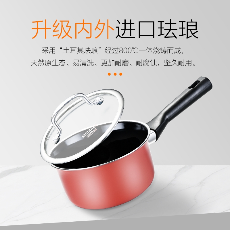 迈巴勒 无涂层钛金陶钢珐琅小奶锅玫红色M-2410