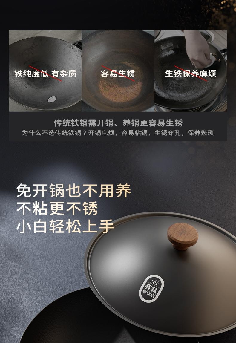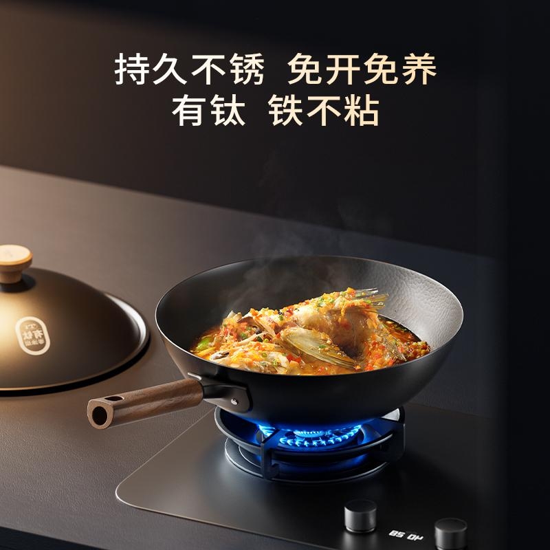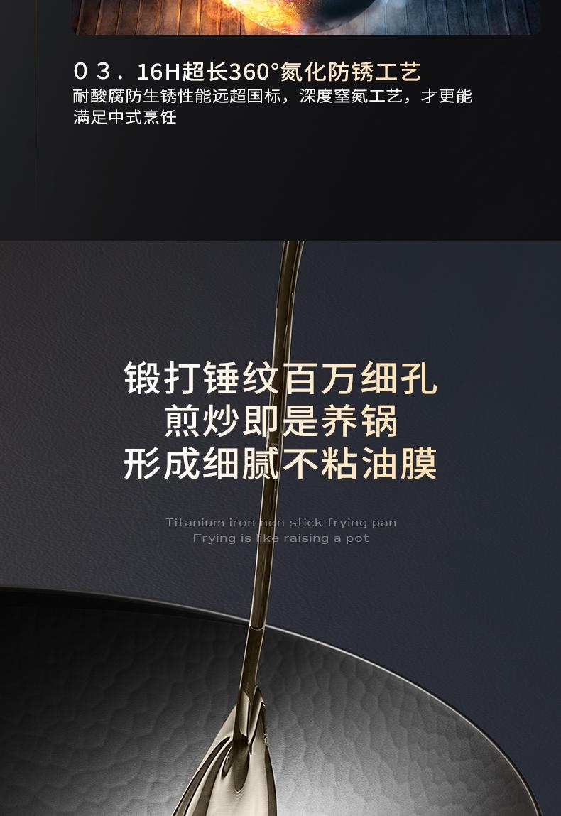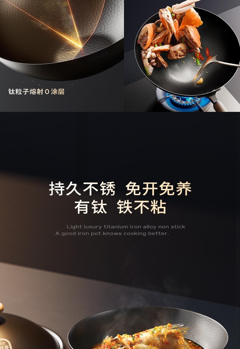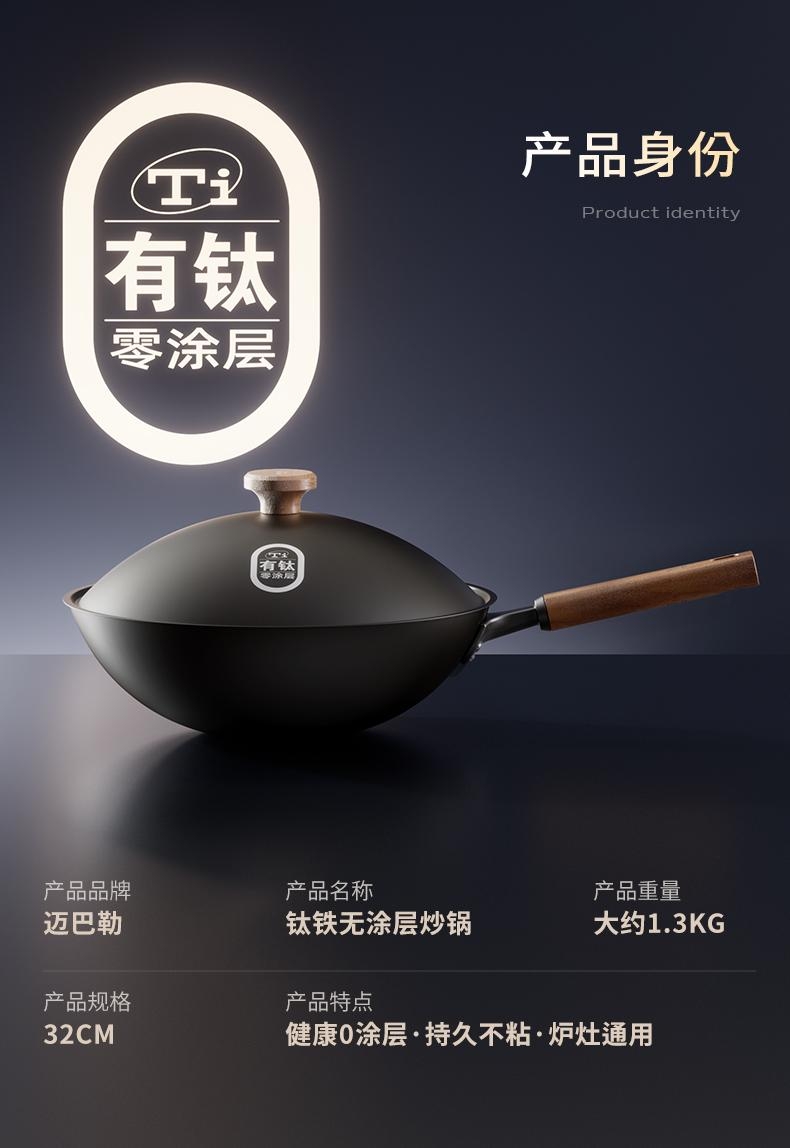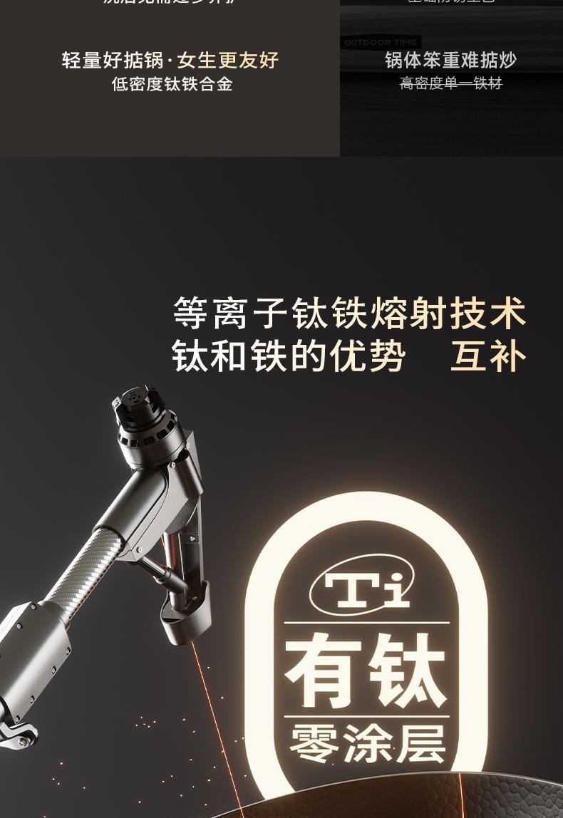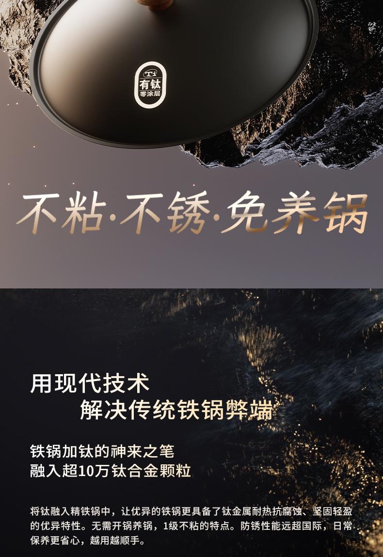 铁锅加钛的神来之笔;不粘·不锈·不用养;耐热抗腐蚀、坚固轻盈