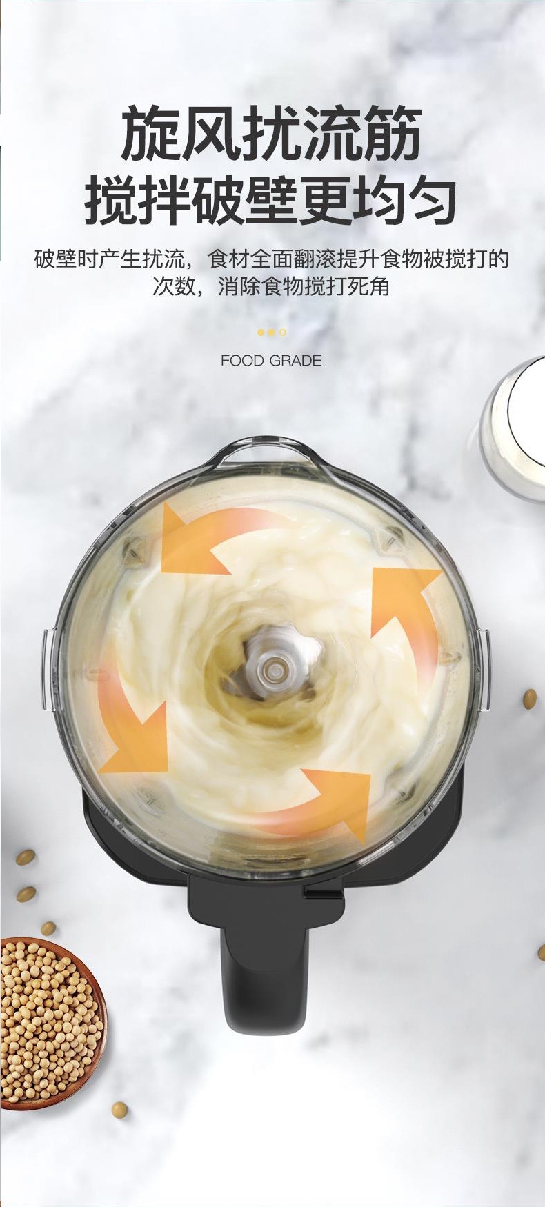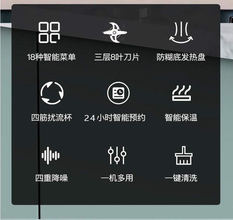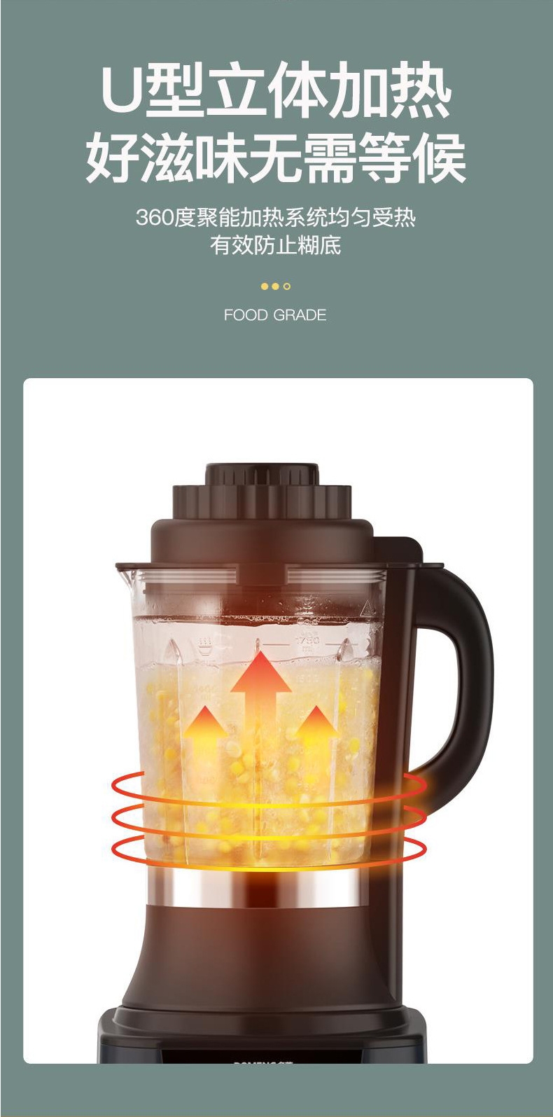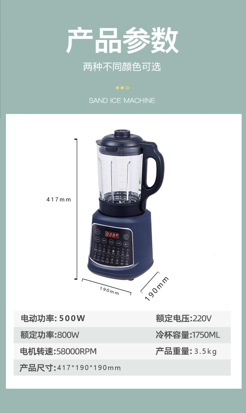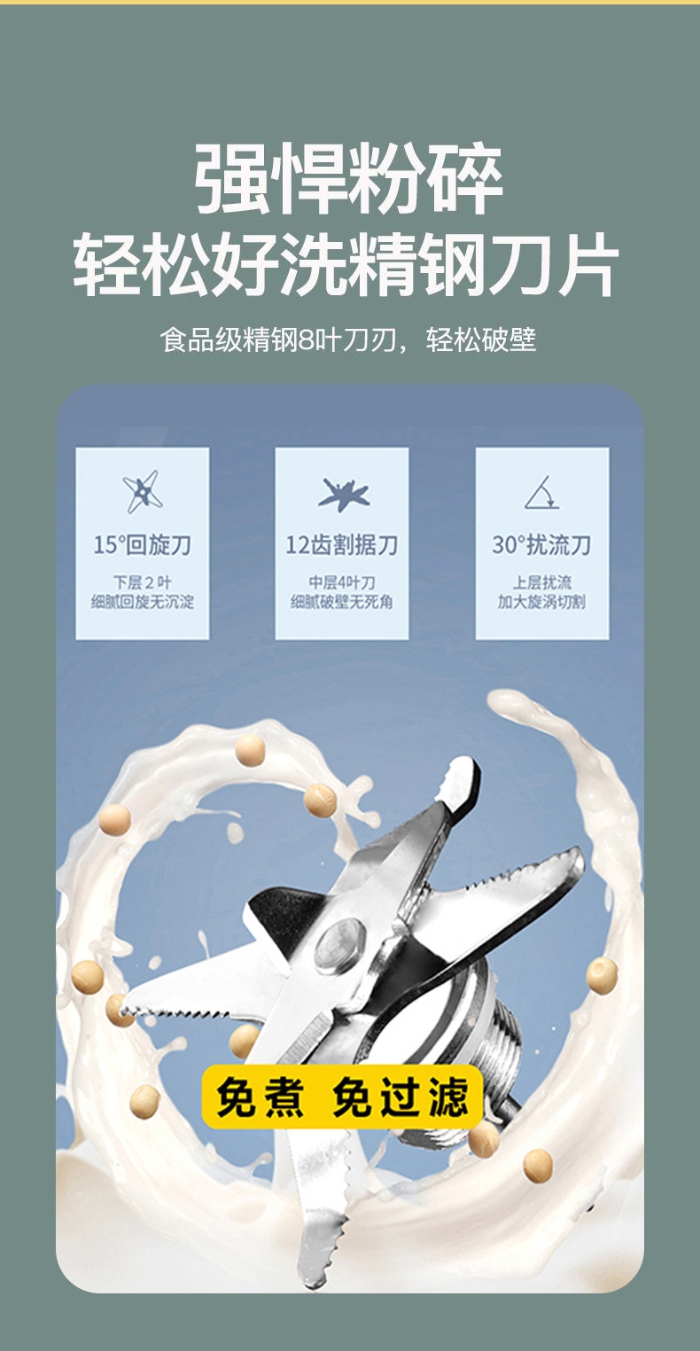 1.75L大容量;打豆浆自动加热 免煮免滤;加热功率800W 搅拌功率500W