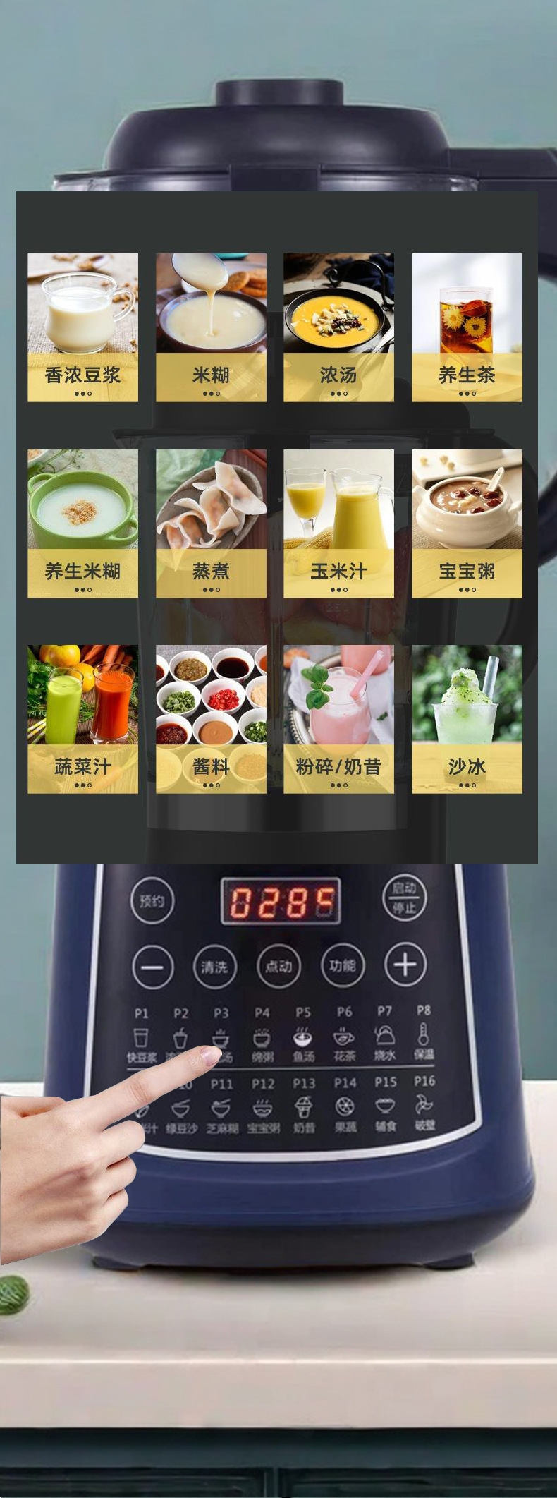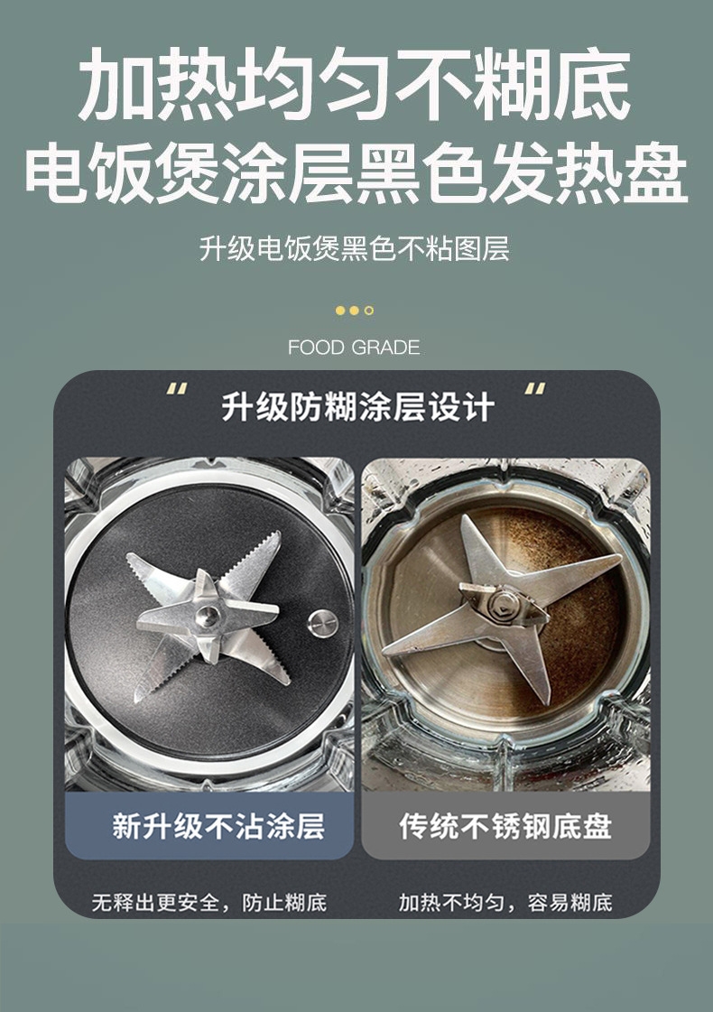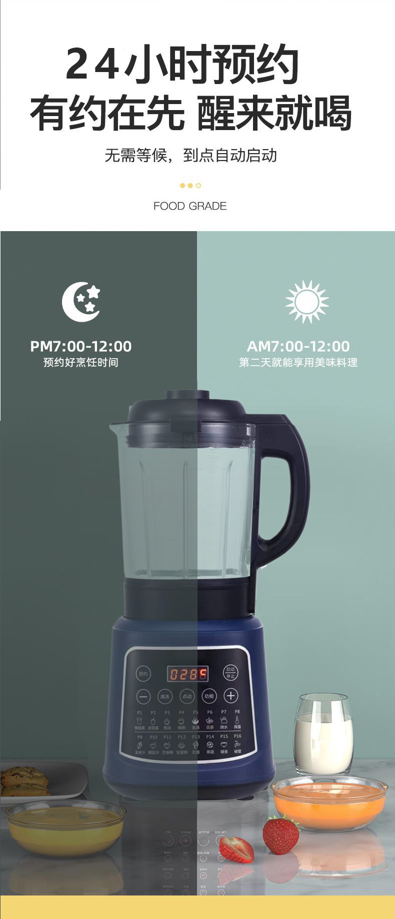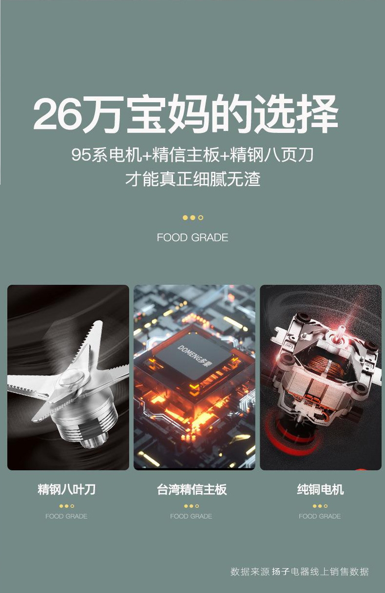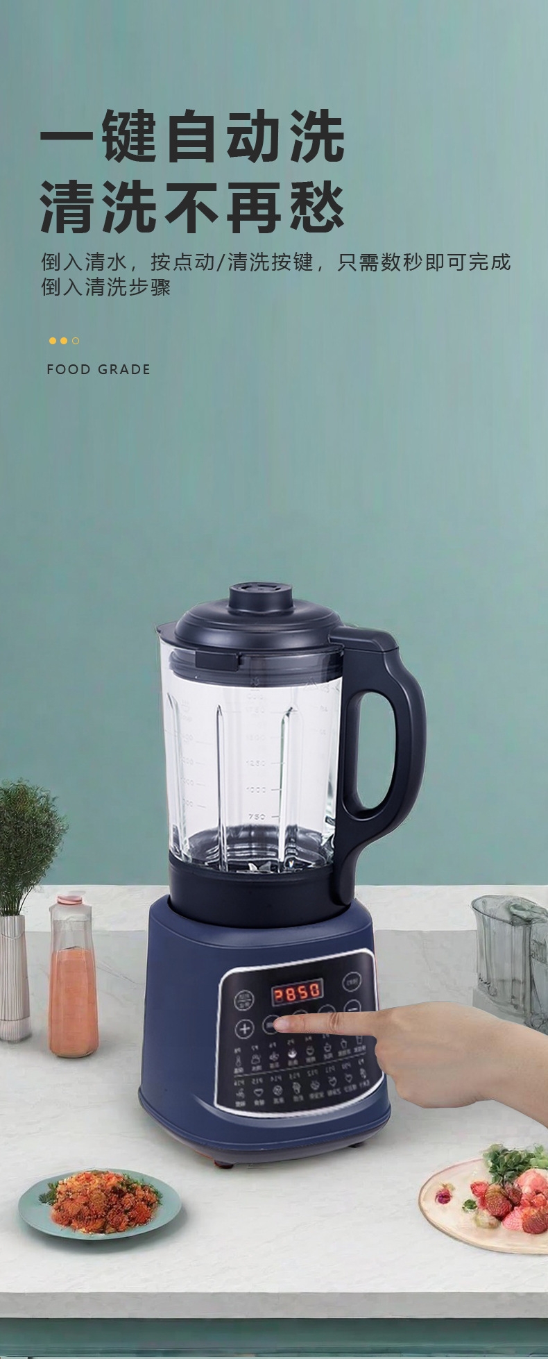 1.75L大容量;打豆浆自动加热 免煮免滤;加热功率800W 搅拌功率500W