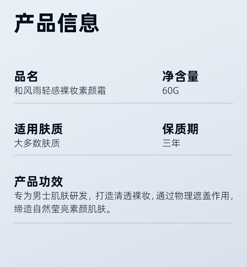 和风雨 男士素颜霜60g遮瑕护肤品HFY001018