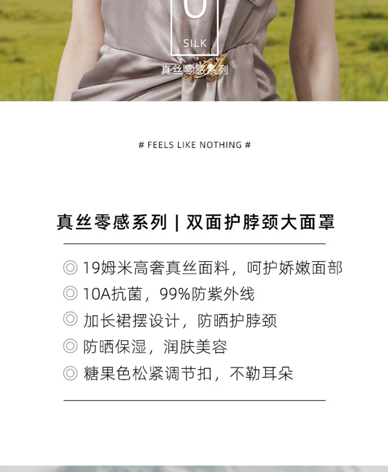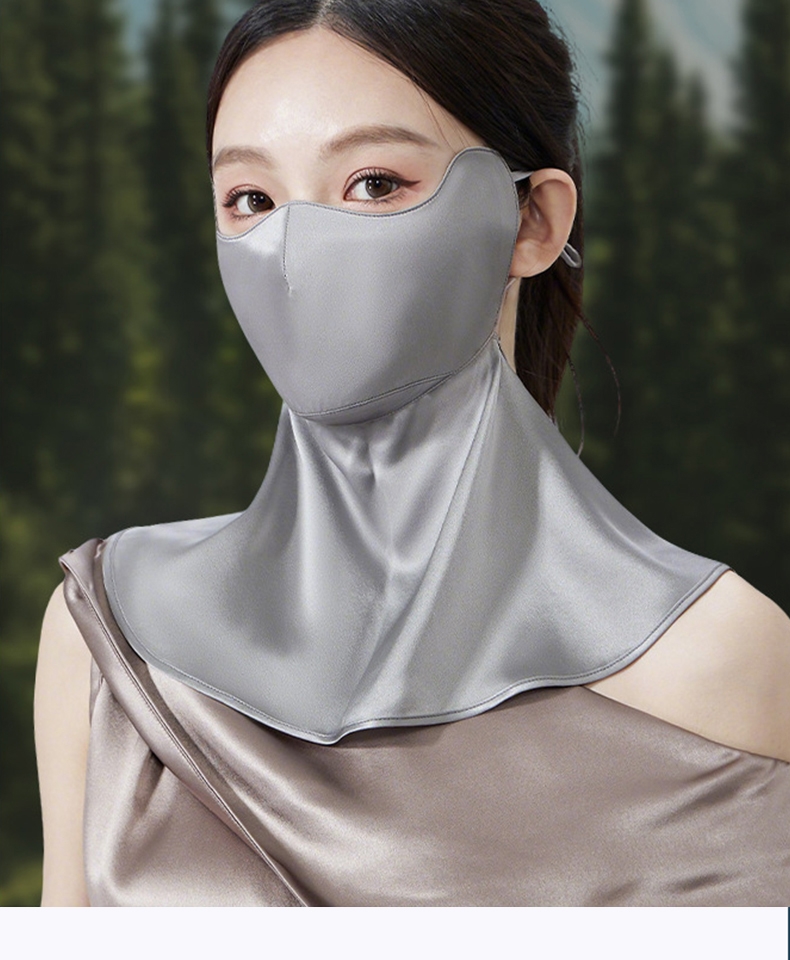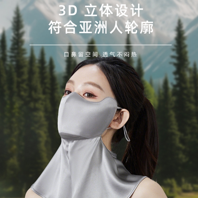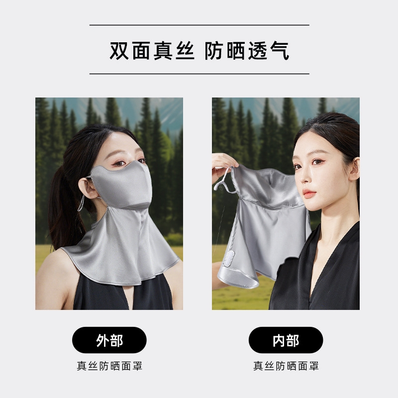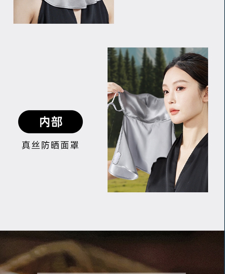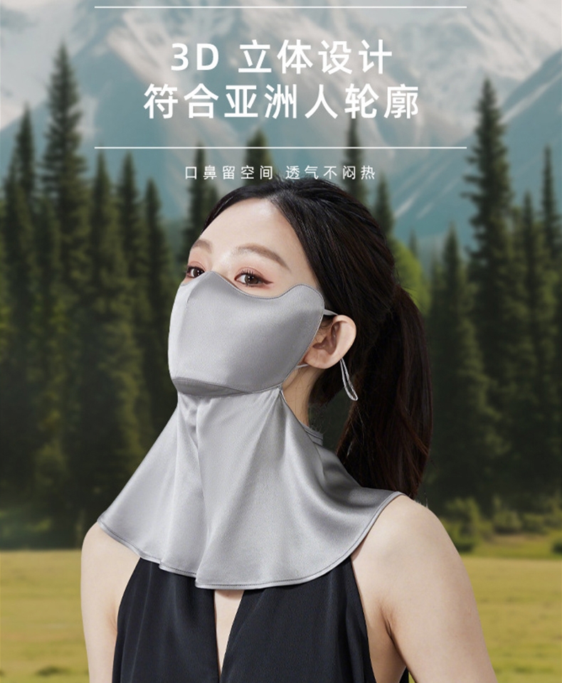 19姆米高奢真丝面料,呵护娇嫩面部;6A抗菌,99%防紫外线;加长裙摆设计,防晒护脖颈防晒保湿