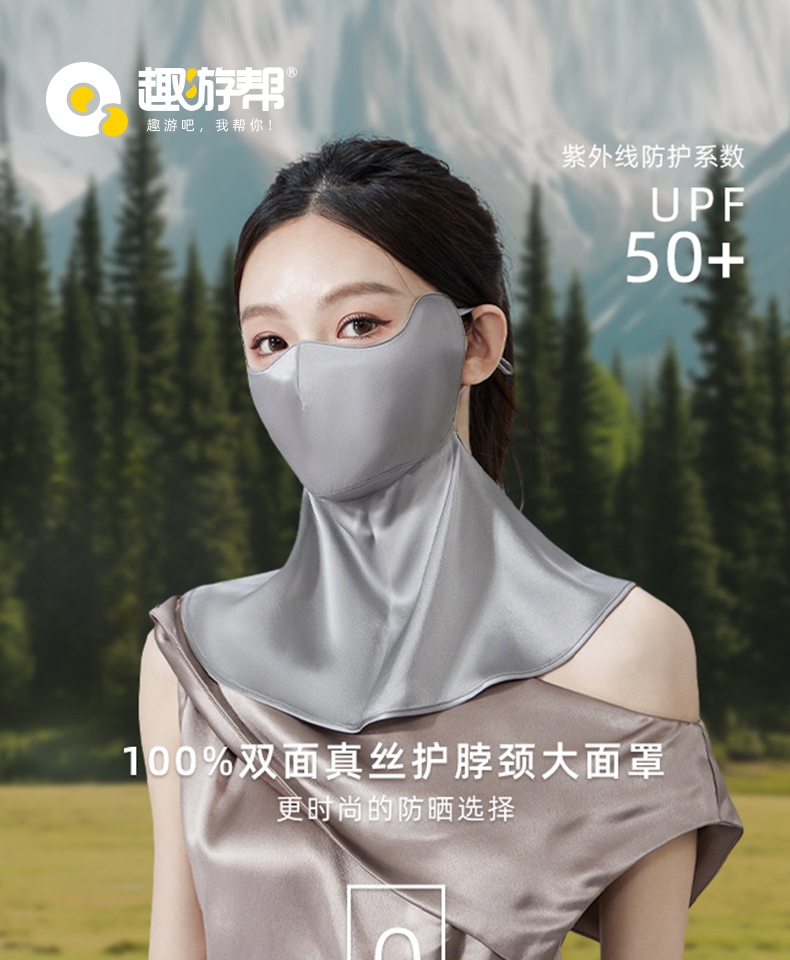 趣游帮 护脖颈双面真丝防晒面罩S-2511