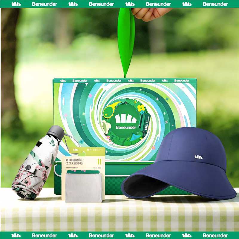 飞机盖礼盒;防晒鸭舌帽: UPS100+ ;胶囊雨伞