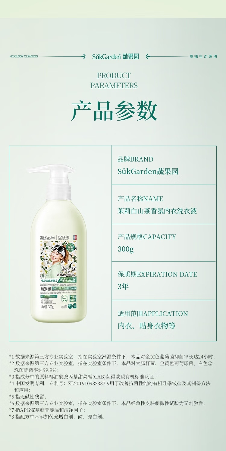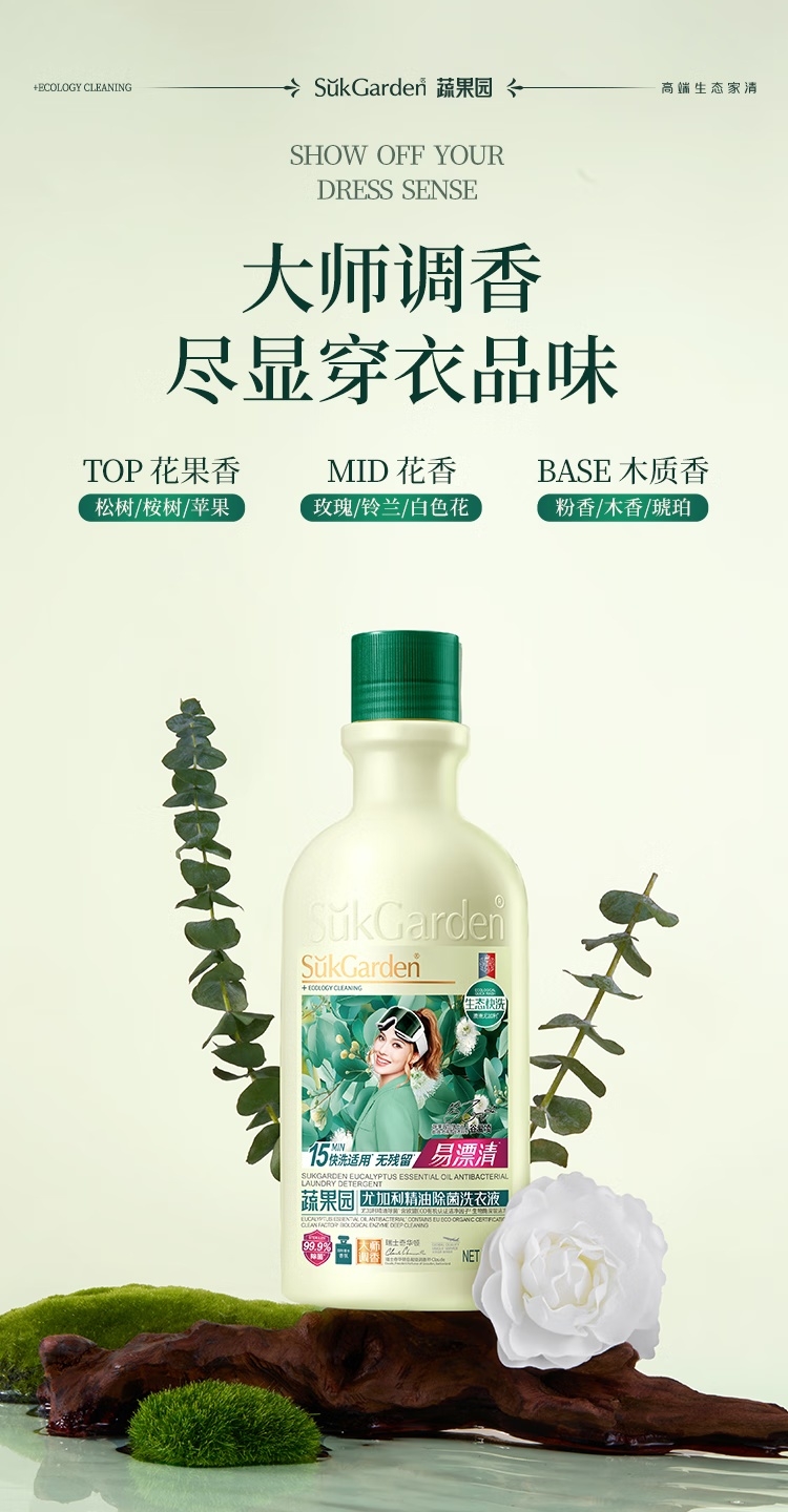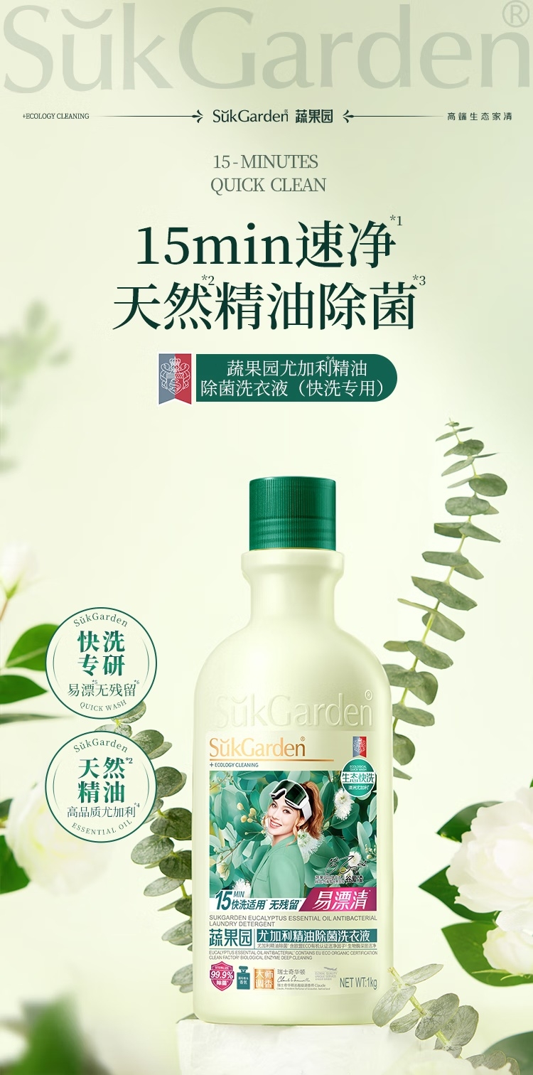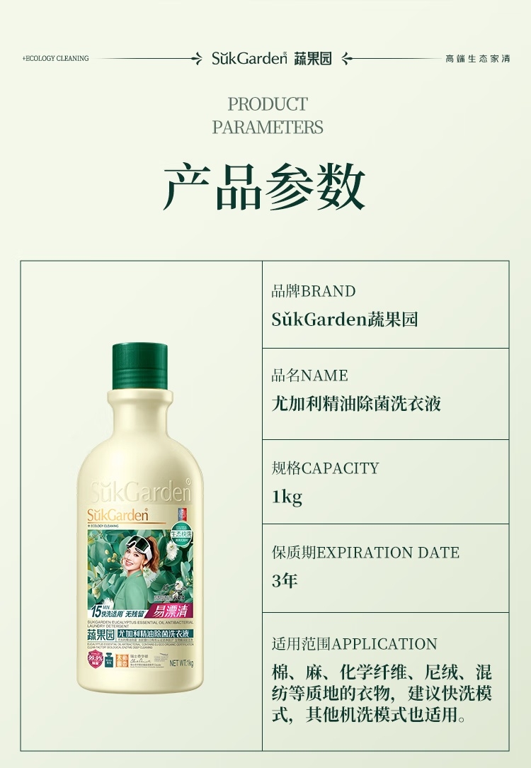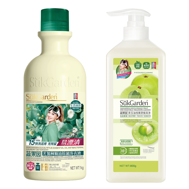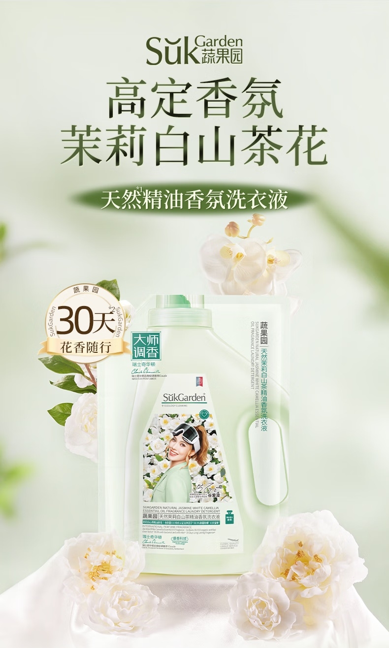 配置清单: SukGarden蔬果园茉莉白山茶香氛洗衣液500g SukGarden蔬果园茉莉白山茶香氛内衣洗衣液300g SukGarden蔬果园尤加利精油除菌洗衣液1kg SukGarden蔬果园青玉油柑果蔬餐具净800g SukGarden蔬果园精美礼盒-谷爱凌版ML01