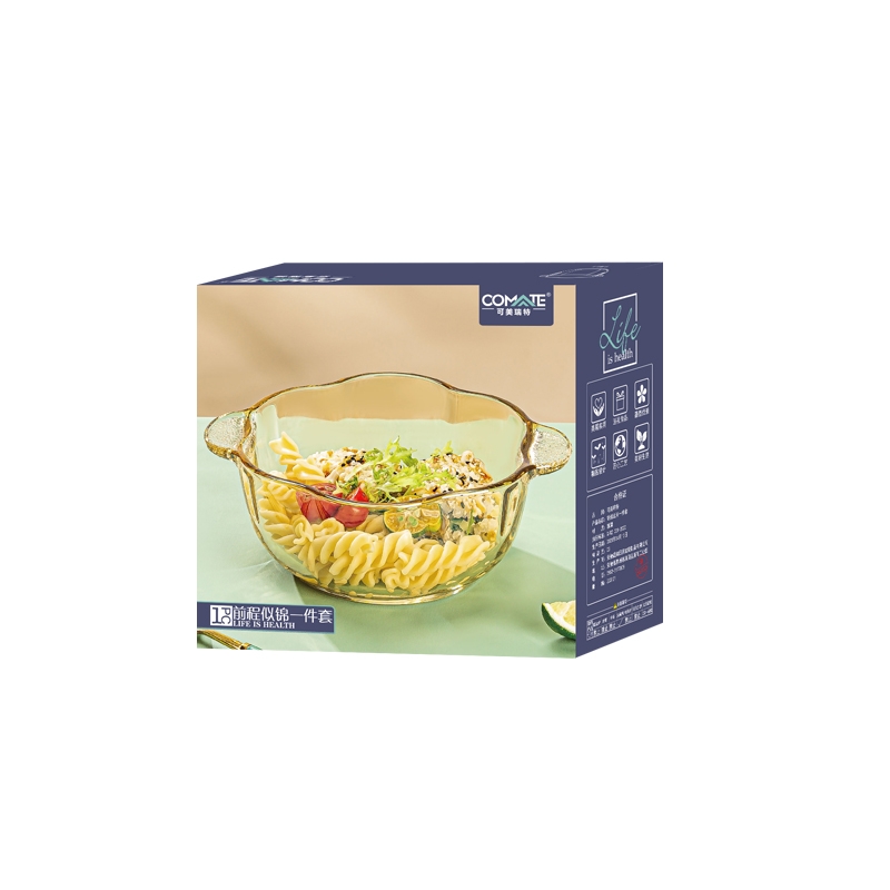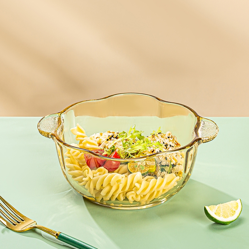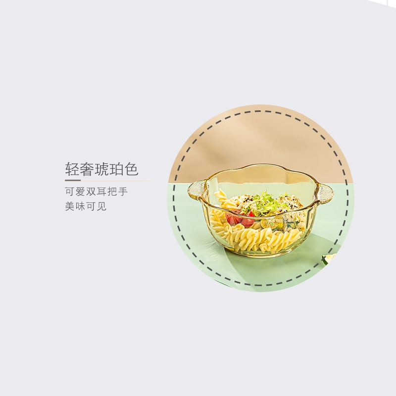 五福梅花造型;琥珀色玻璃沙拉碗;双耳设计,端拿防烫