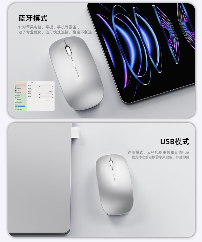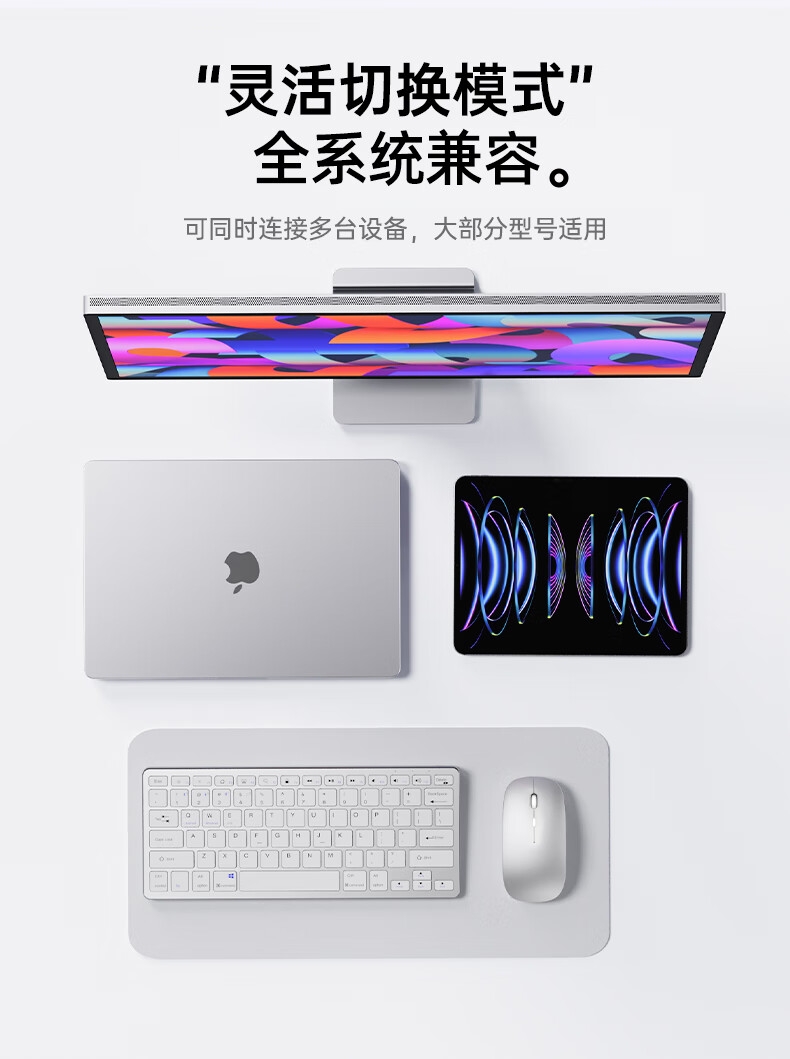 蓝牙,2.4G两种连接方式;低音按键滚轮;一体曲面设计