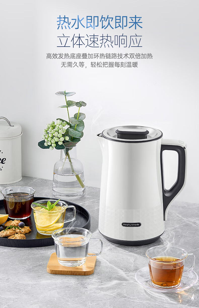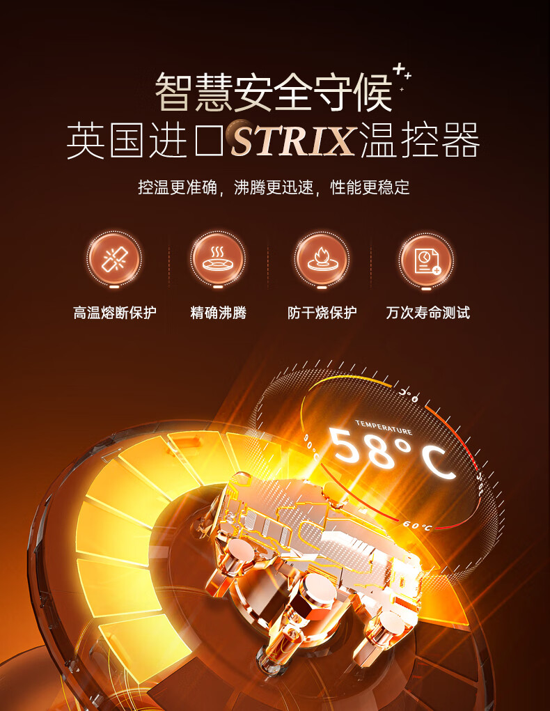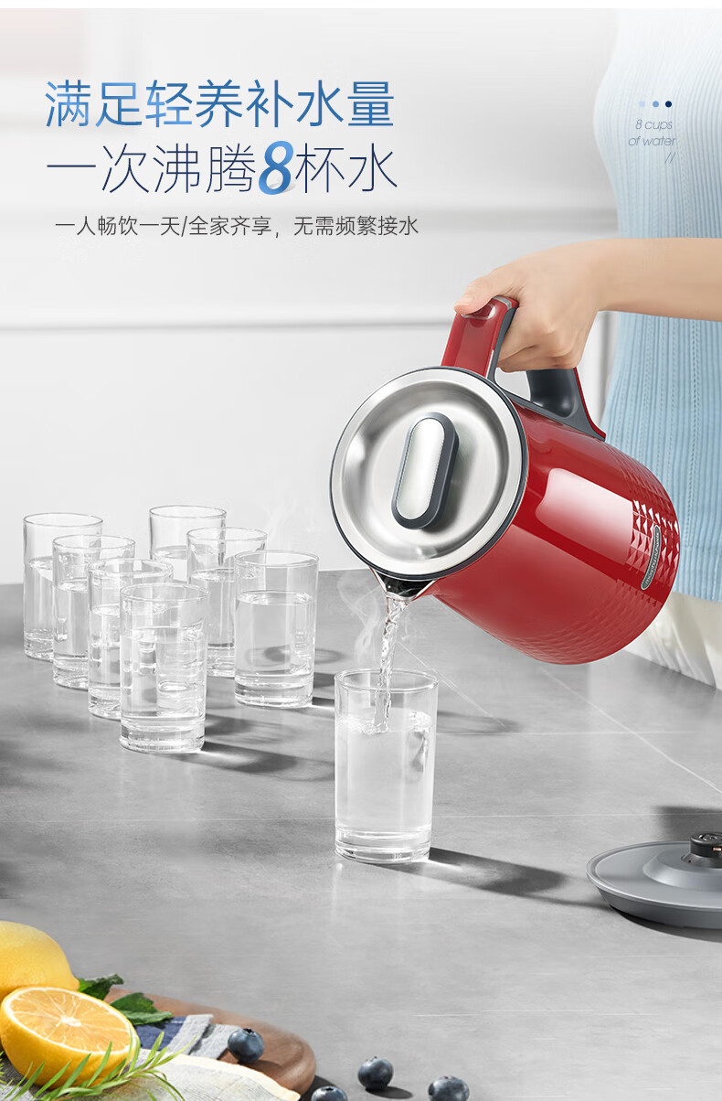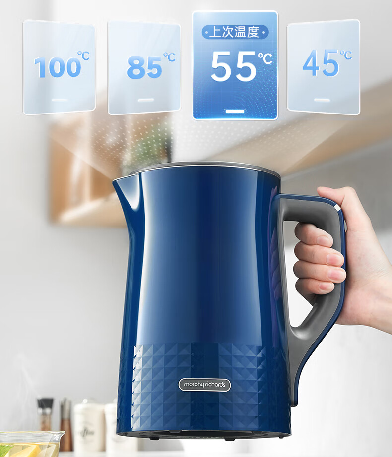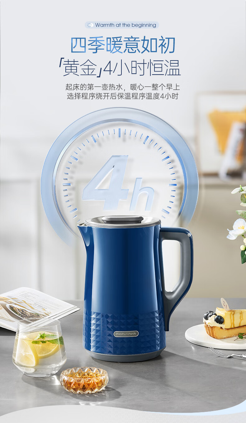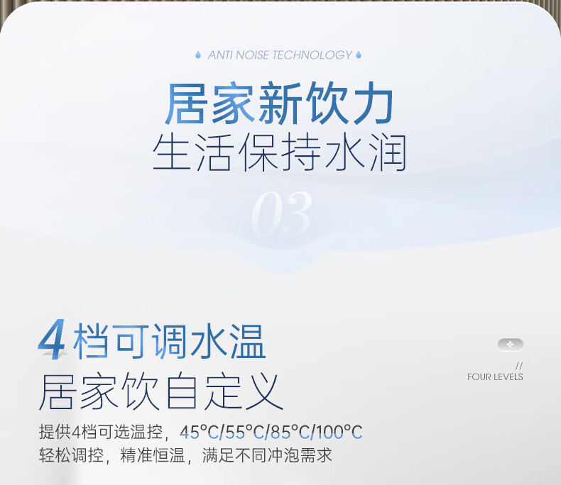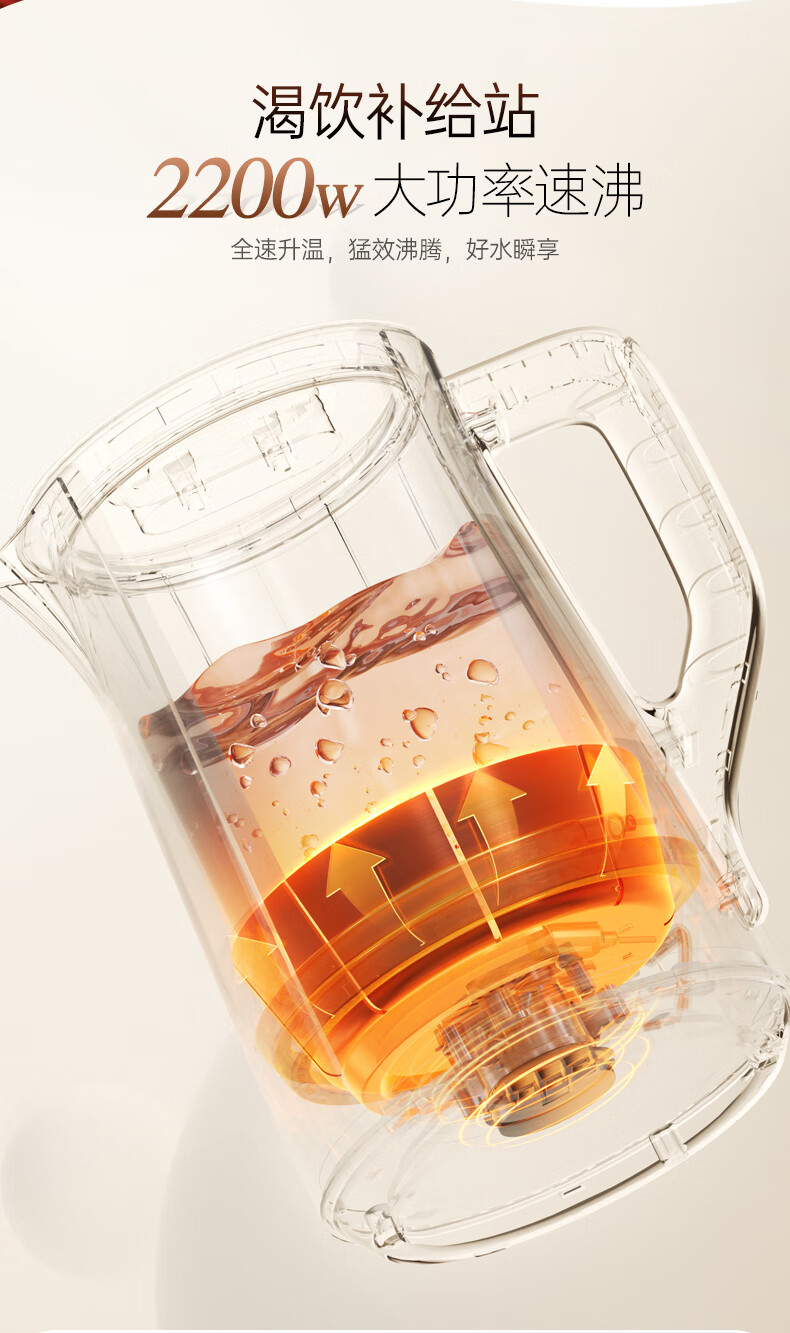4档精准控温,恒温烧水;食品级SUS304不锈钢内胆,保证饮水安全;实时屏幕显示温度与选择程序,轻触开启