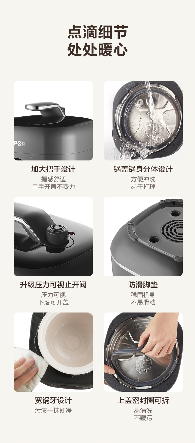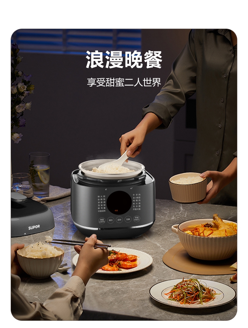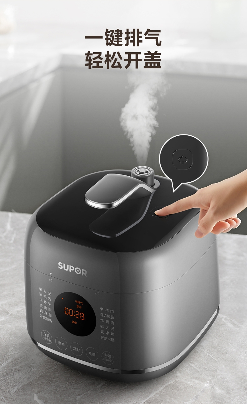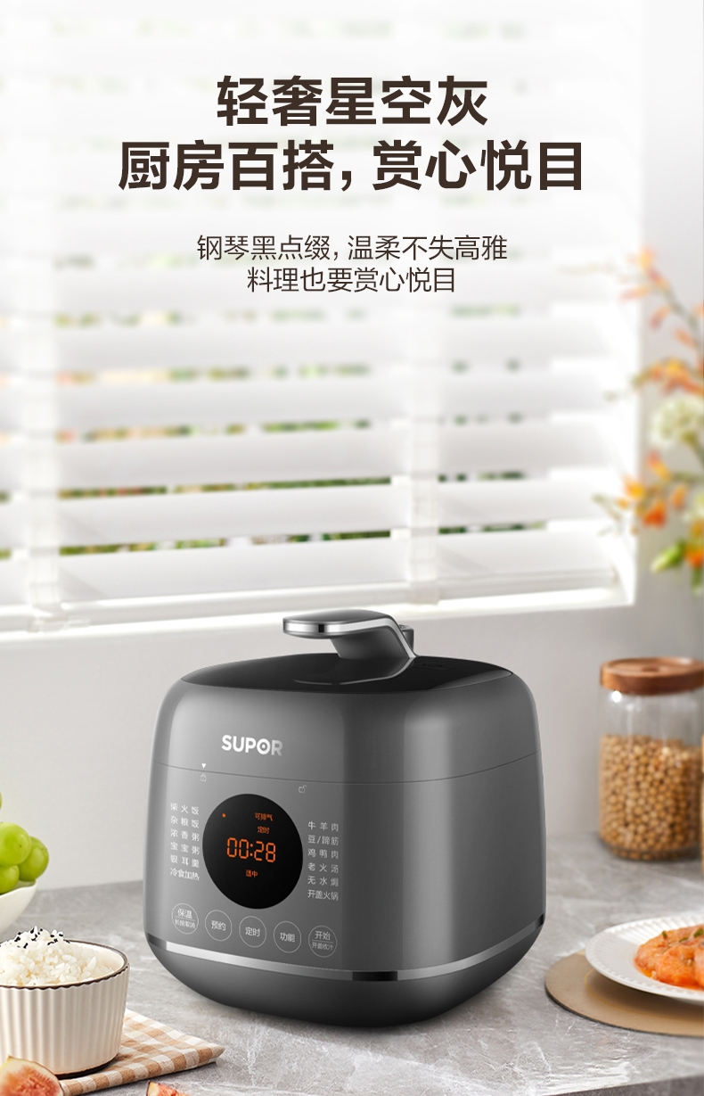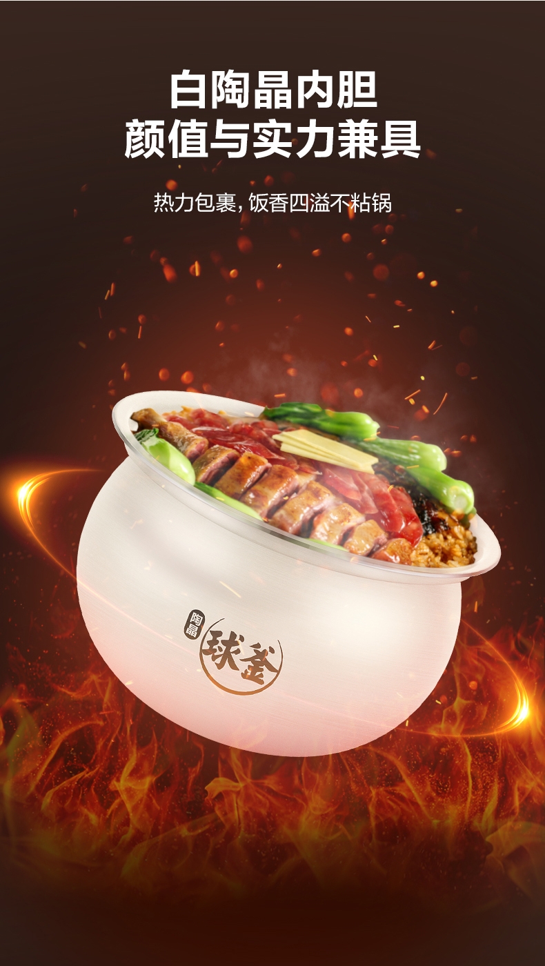 旋钮易操作出菜快人一步,一旋一按快启美味食刻;球釜内胆环流大沸腾,高温高压猛火炖骨肉分离尽兴吃;13大功能菜单触控面板和精控旋钮,轻旋美味即享;24小时预约可定时设计时间口感自主掌控