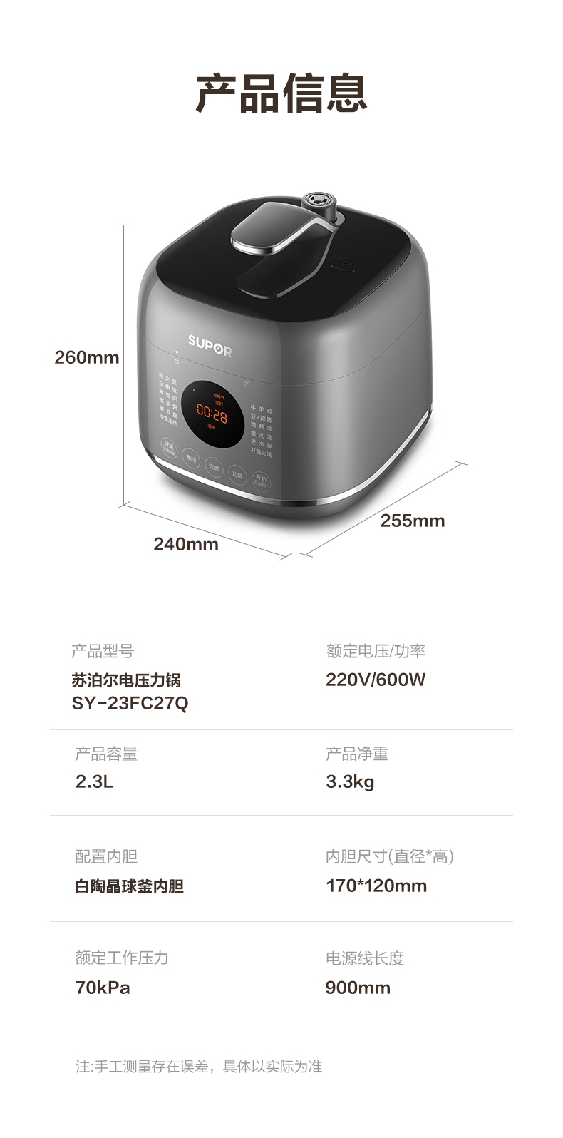 苏泊尔 电压力锅小容量SY-23FC27Q-HY