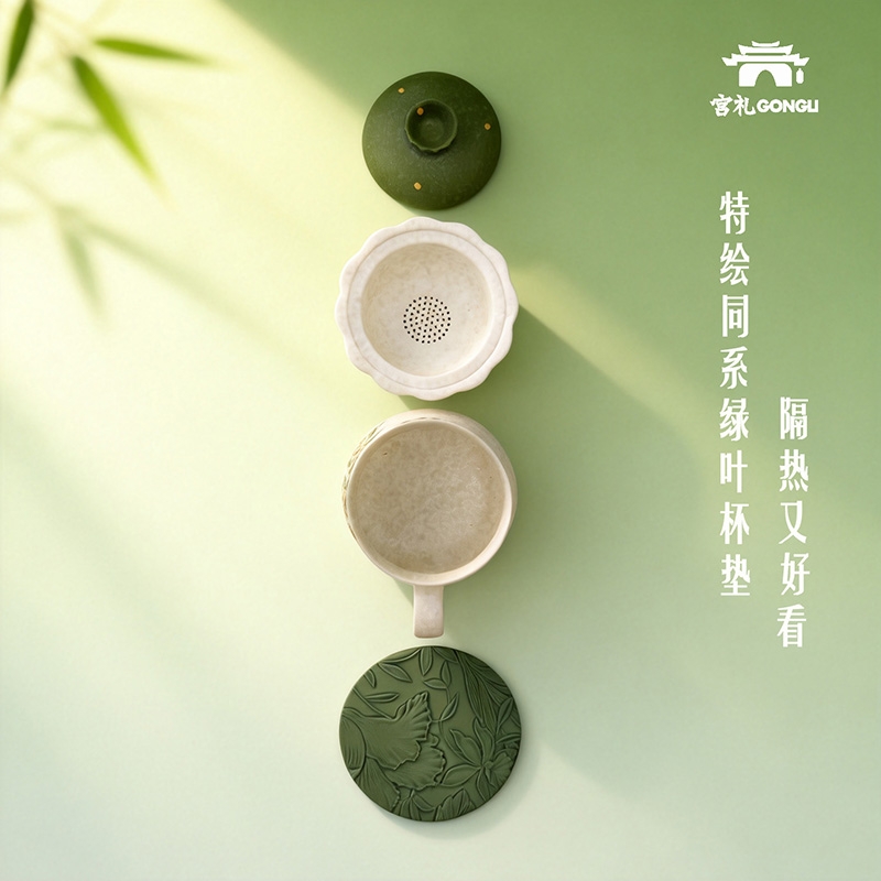 宫礼 小确幸茶水分离杯皮革杯垫套装