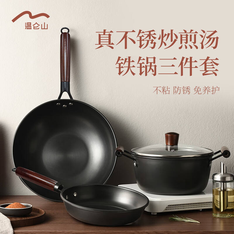 温仑山 真不锈炒煎汤铁锅三件套VE-JL021
