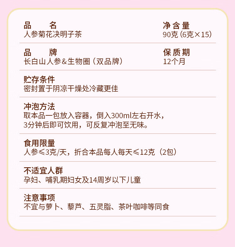 长白山人参 人参菊花决明子茶90克