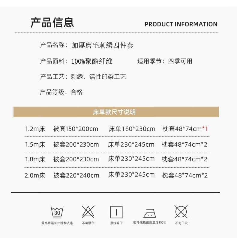 雅鹿 亲肤磨毛刺绣四件套YLJT032
