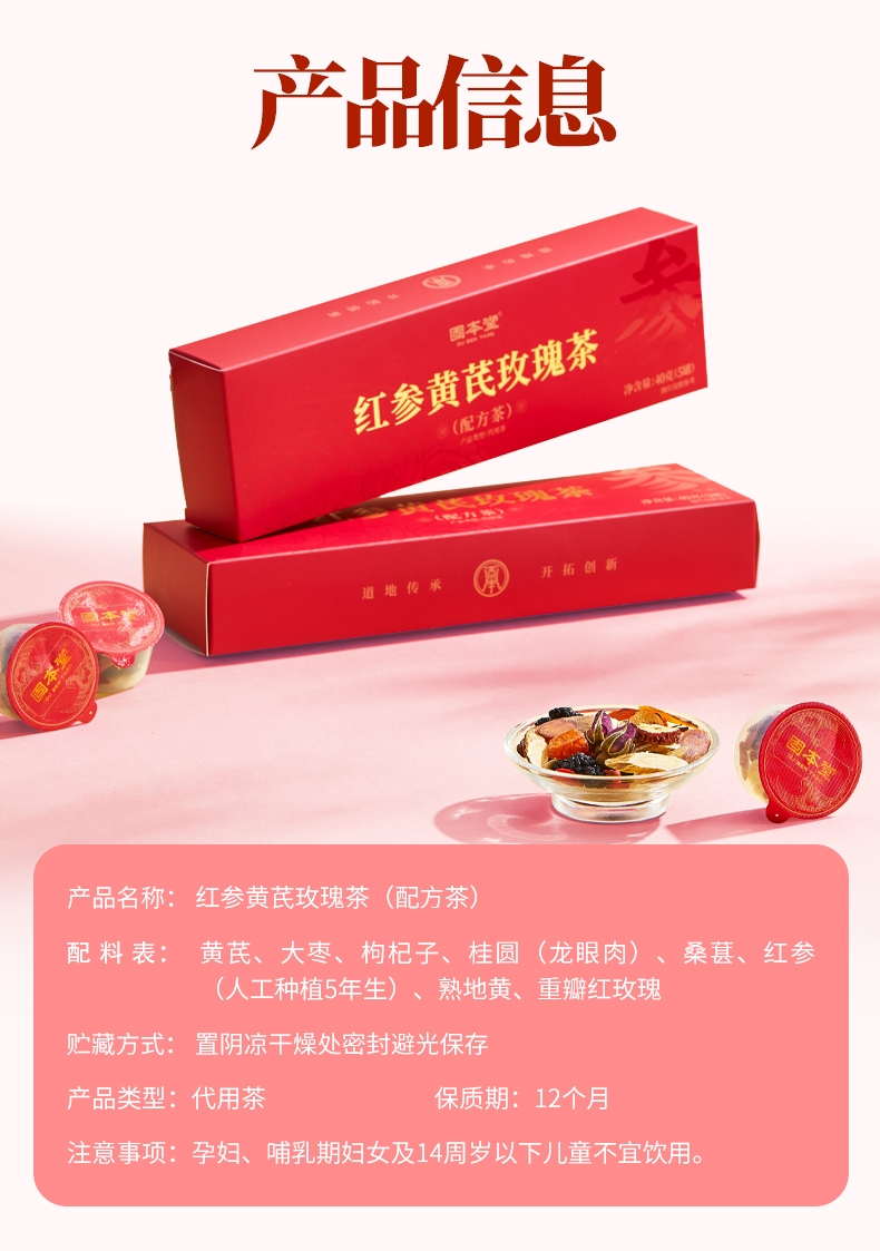 固本堂 红参黄芪玫瑰茶40克5GBT0C072