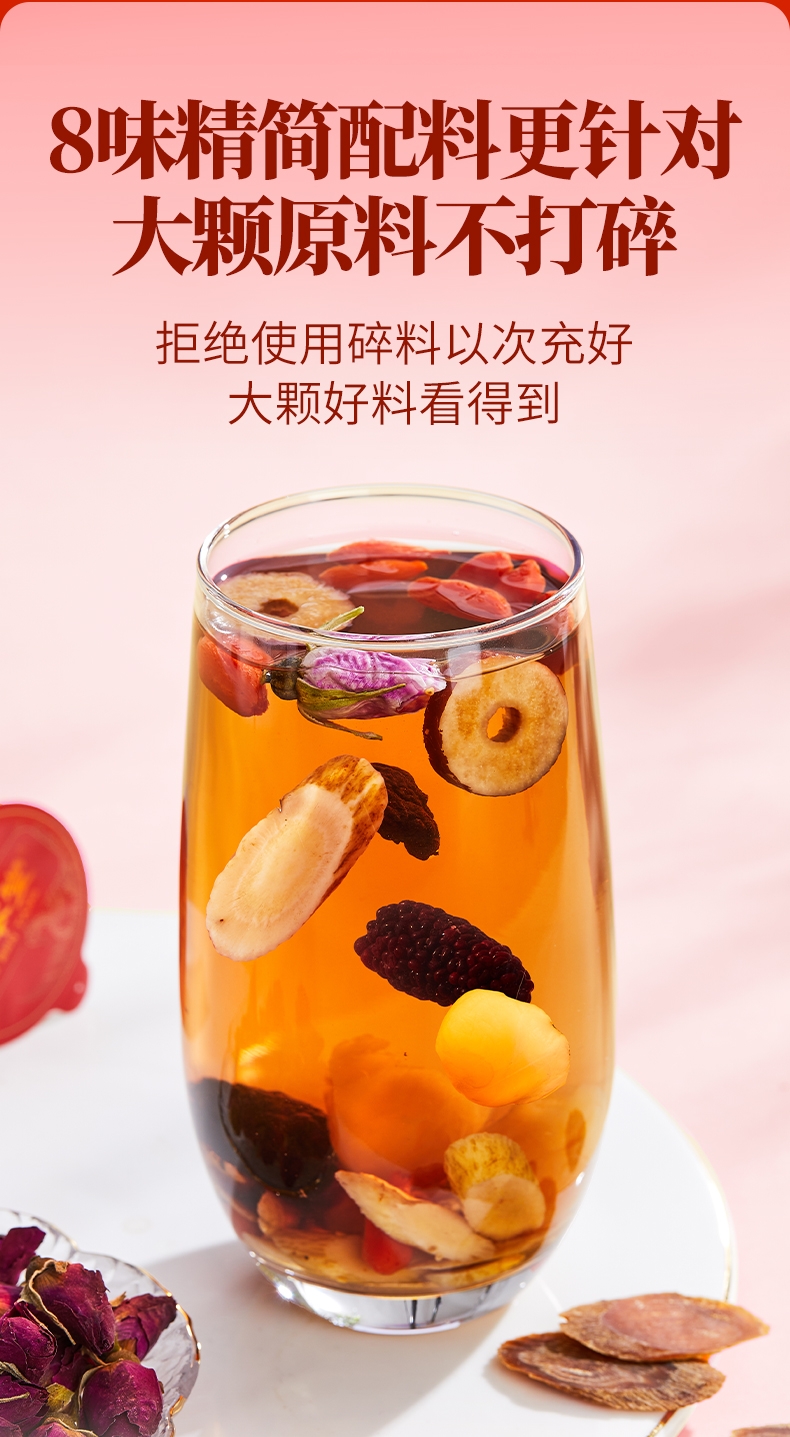甄选贵料 整料不碎;贵料高配 颗颗饱满;8味精简配料更针对 大颗原料不打碎