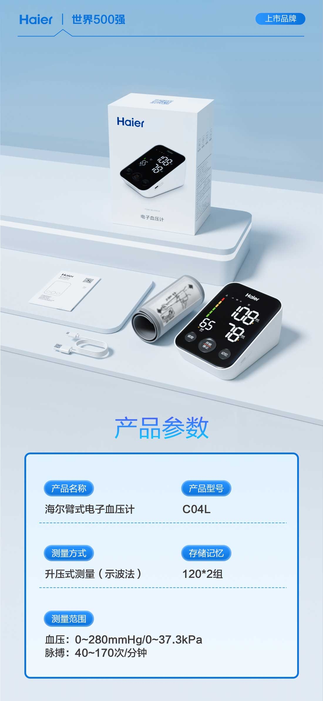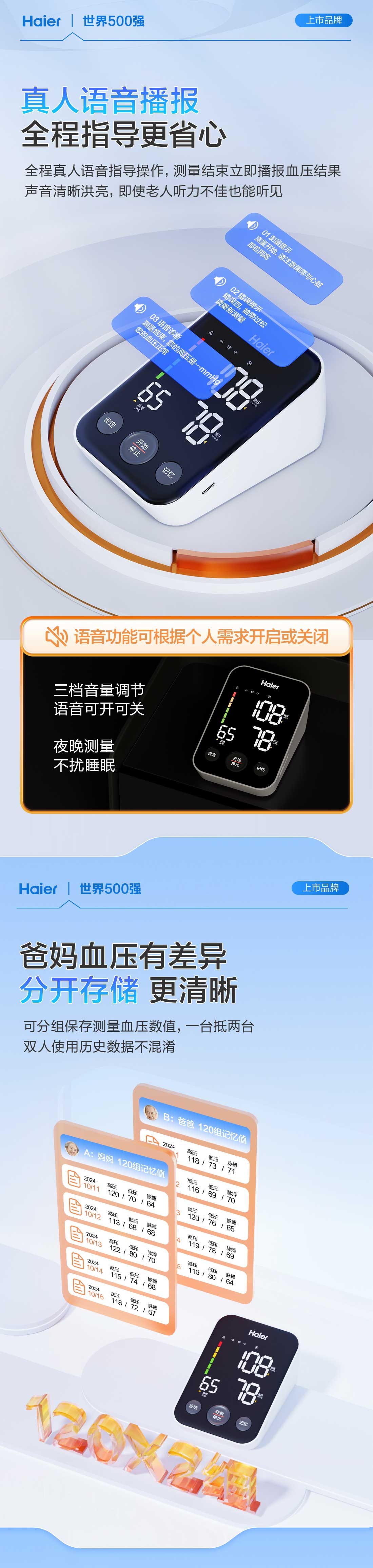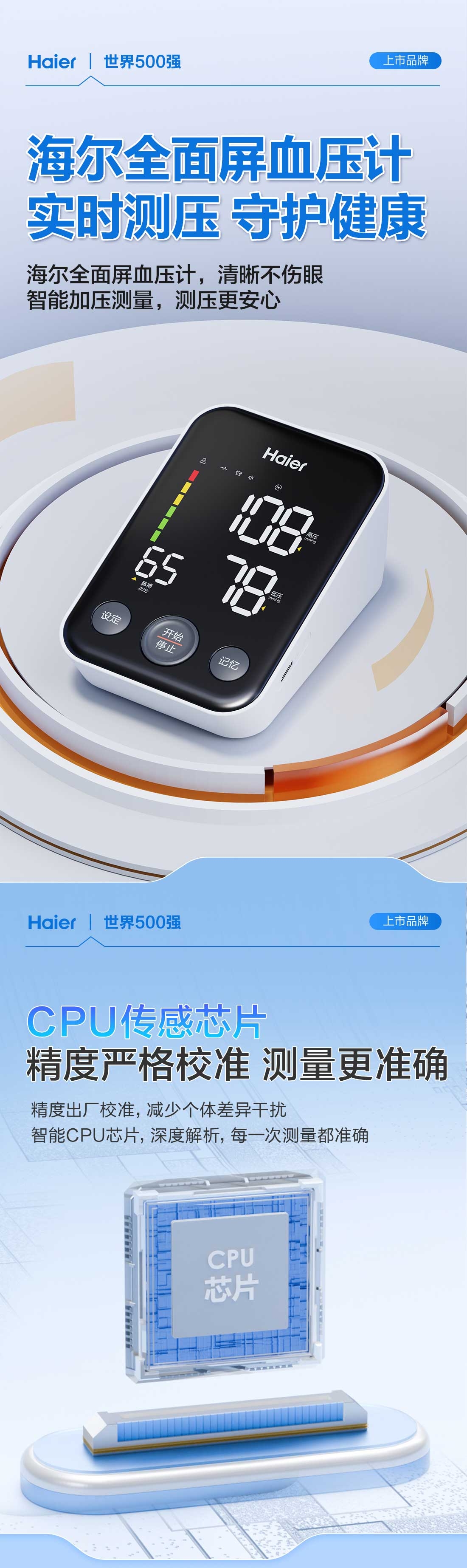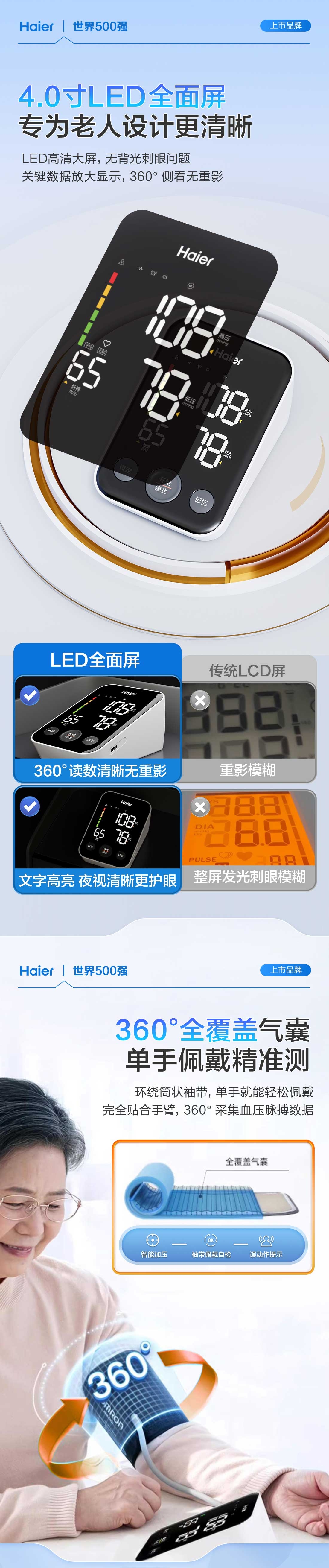 CPU传感芯片精度严格校准测量更准确;4.0寸LED全面屏专为老人设计更清晰;360°全覆盖气囊单手佩戴精准测